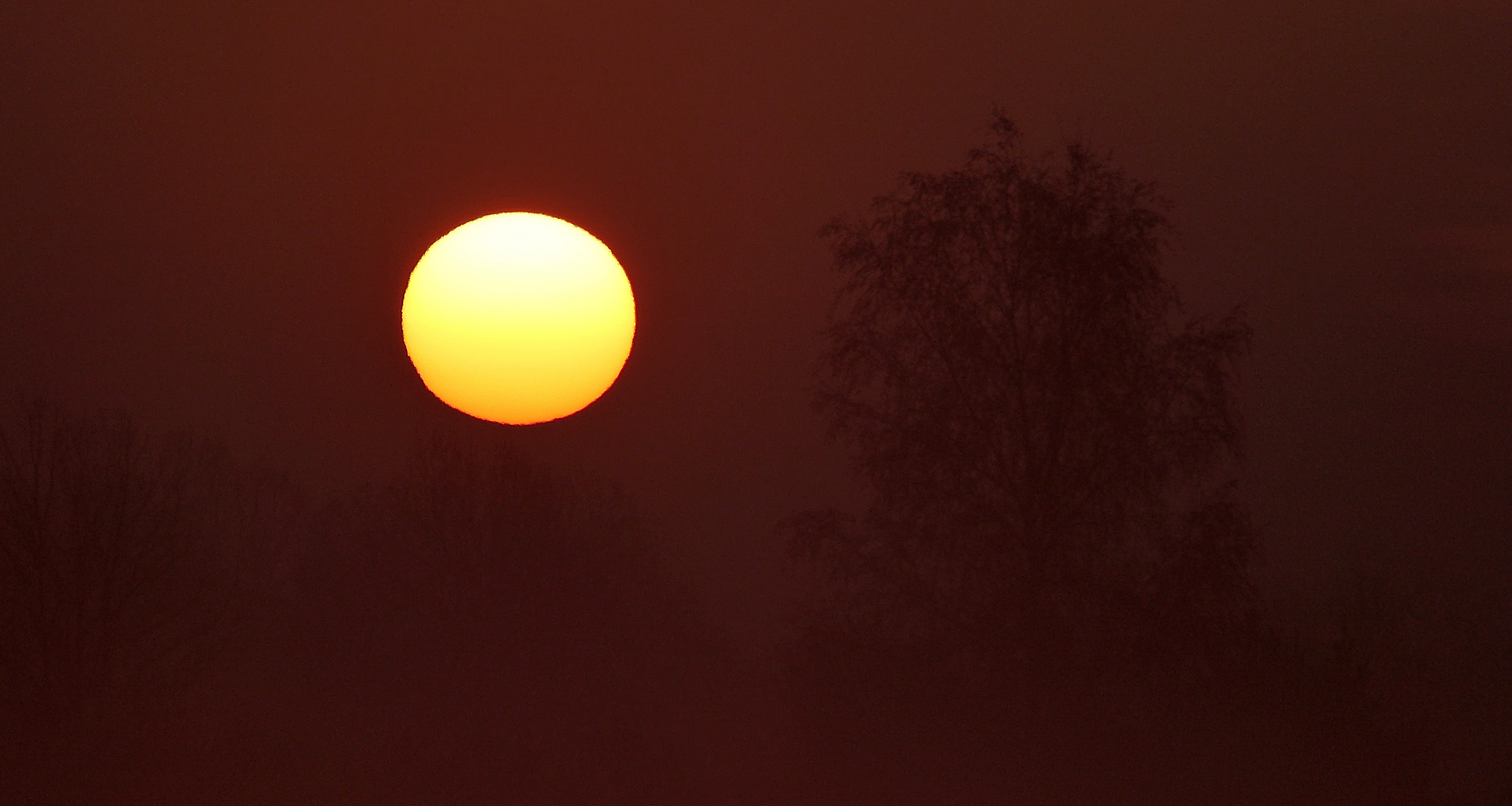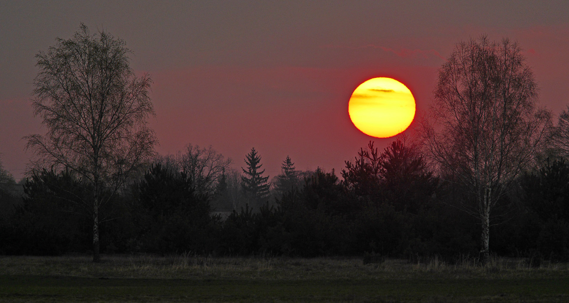 Ale w głębi kraju najczęściej dostaję żółte słońce. Przed kilku dniami na godzinę przed wschodem słońca poszedłem fotografować żurawie w miejscu gdzie je często widywałem. Żurawi nie było; najpewniej gdzieś gniazduja. Czas mijał, słońce już wzeszło, zatem fotografowałem jego wschód. Dwa kolejne załączniki to wykadrowane dla poprawienia kompozycji zdjęcie prosto z aparatu (2) i obrobione w PSE (3) dla wzmocnienia czerwieni. Chmury poczerwieniały mocniej, ale nie słońce.