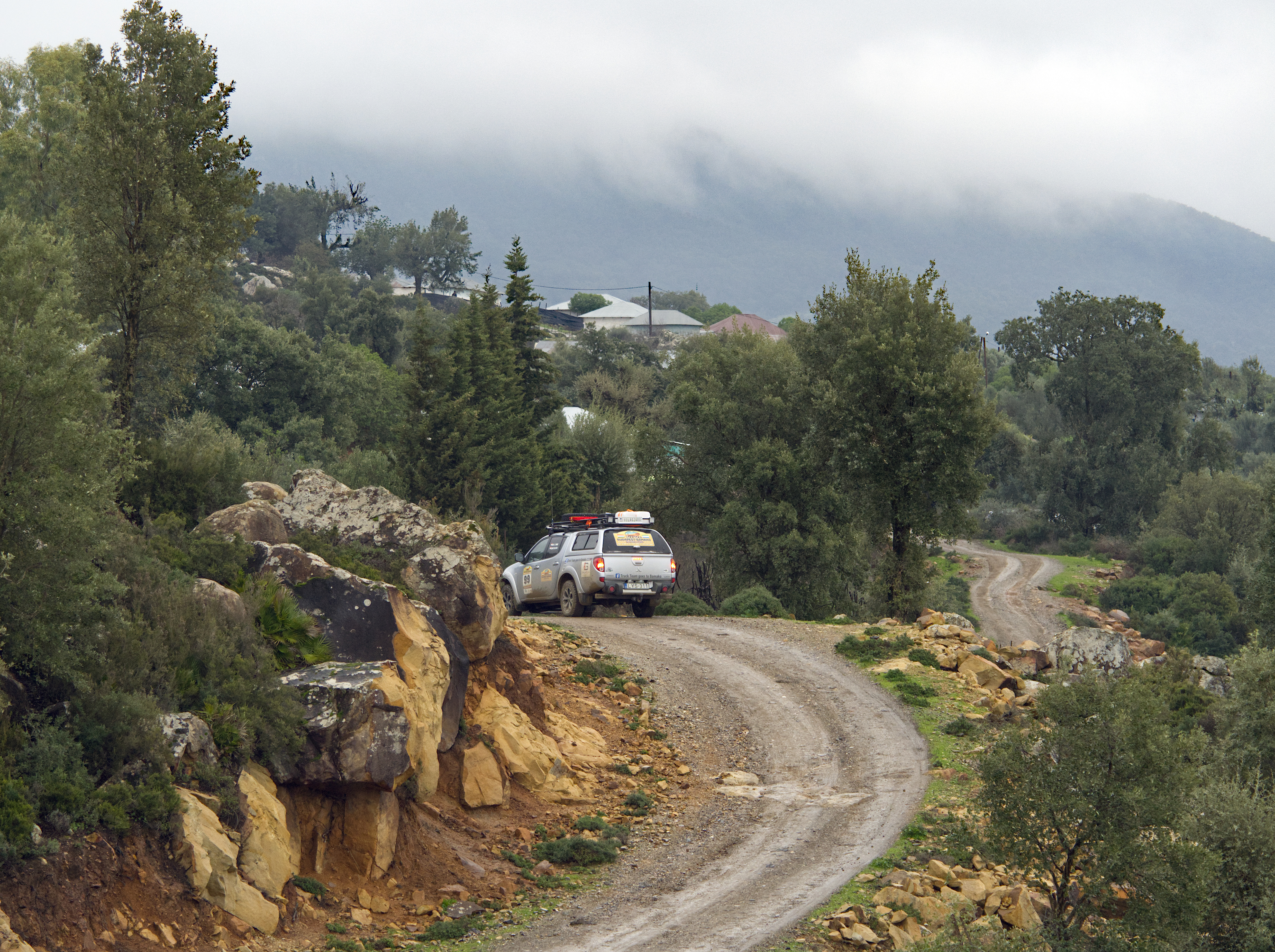 Pogoda na trasie trafiła się najgorsza jaka mogla - na szczęście ominęliśmy Alpy gdzie były spore opady śniegu ale głownie jechaliśmy w deszczu, który później spowodował potężne powodzie w Hiszpanii. Część ekip płynęła promem z Genui do Tangeru wiec się załapała na sztorm który atakował Sycylię, Maltę i ogólnie tamte rejony. W Maroku w gorąch atlas spadły tony śniegu wiec część etapów została pominiętą ze względu na zasypane drogi, np. szlak zimowy pieszy na Toubkal (najwyższy szczyt Atlasu) został zamknięty ze względu na lawiny i kilka śmiertelnych wypadkow.