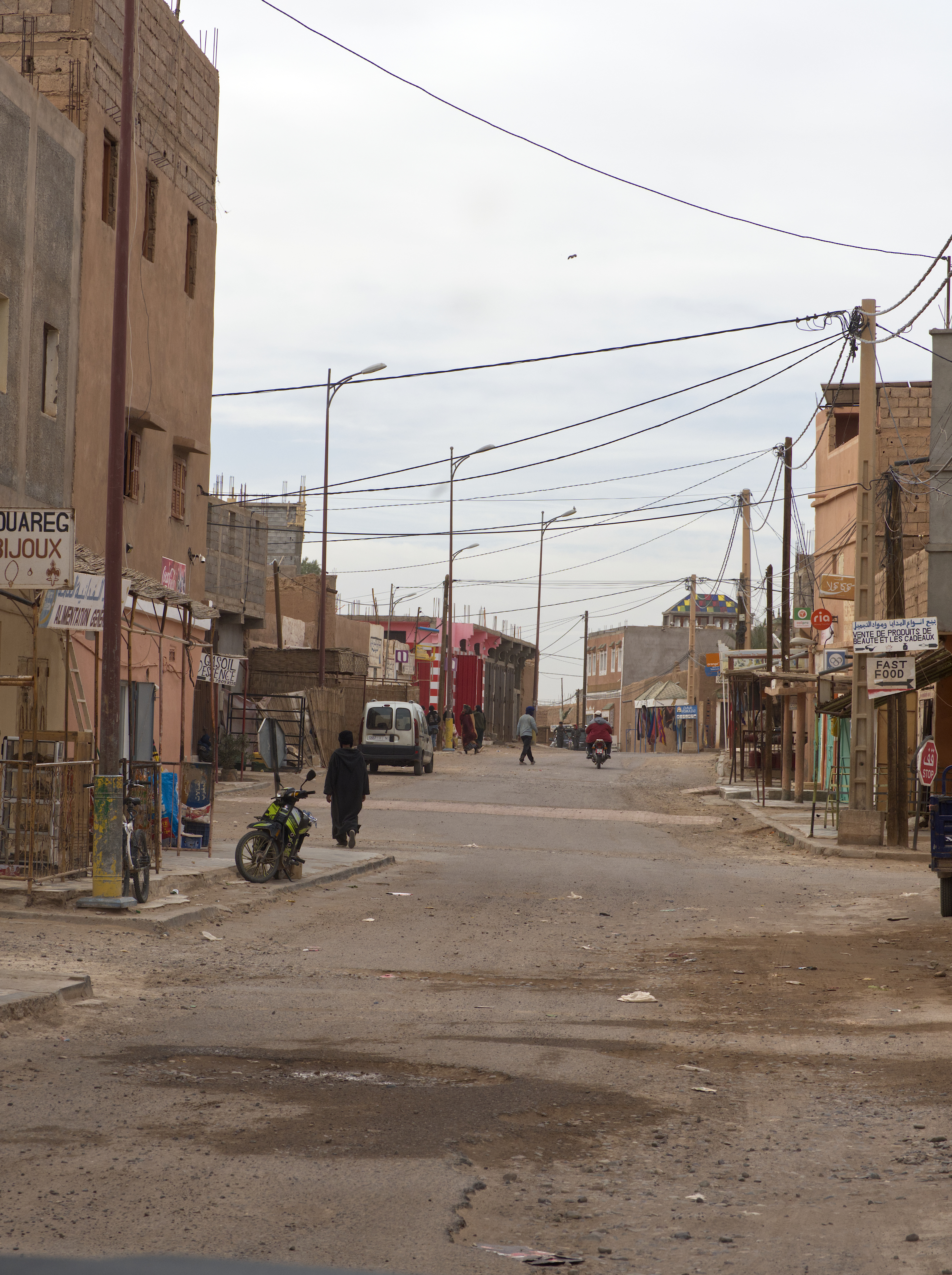 Prawie końcowym przystankie na asfalcie było miasteczko Tagounite - jedzenie, woda, paliwo i można było ruszać w prawdziwa pustynie.