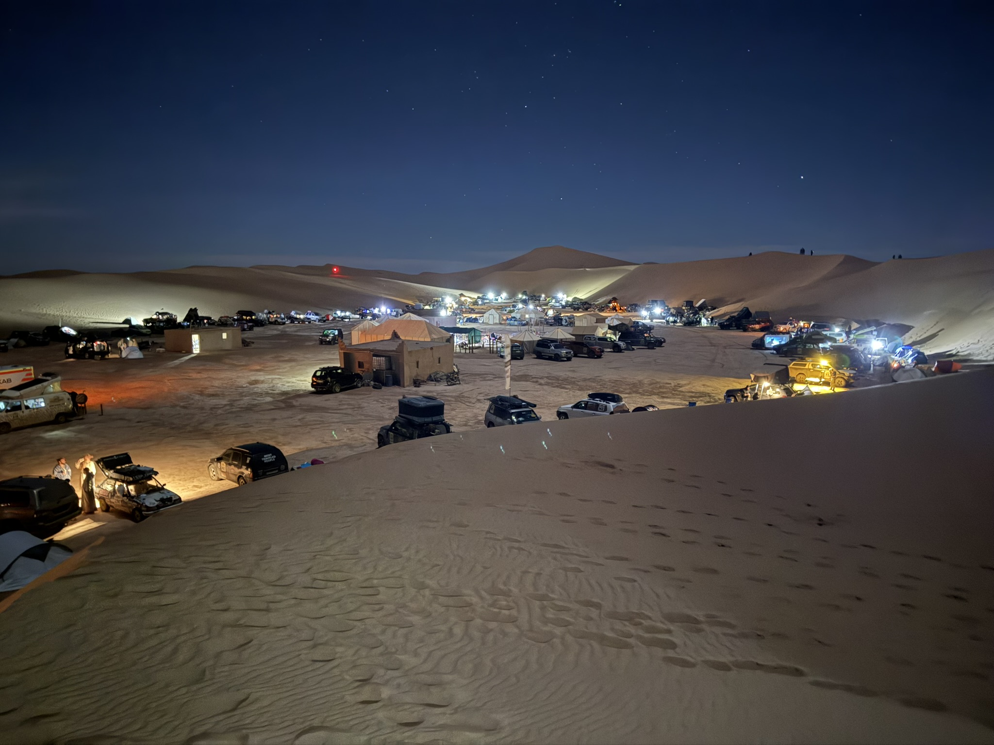 Następnego dnia startowaliśmy z Mitelt do Erg Chigaga w Parku Narodowym Iriqui. Ogólnie w ten dzień mieliśmy przekroczyć Atlas na wysokości około 3000m n.p.m. ale ze względu na zablokowane szlaki przez śnieg organizatorzy musieli zmienić trasę wiec pomknęliśmy na południe Maroka asfaltem rzecz jasna przed wschodem słońca bo to offroad :)