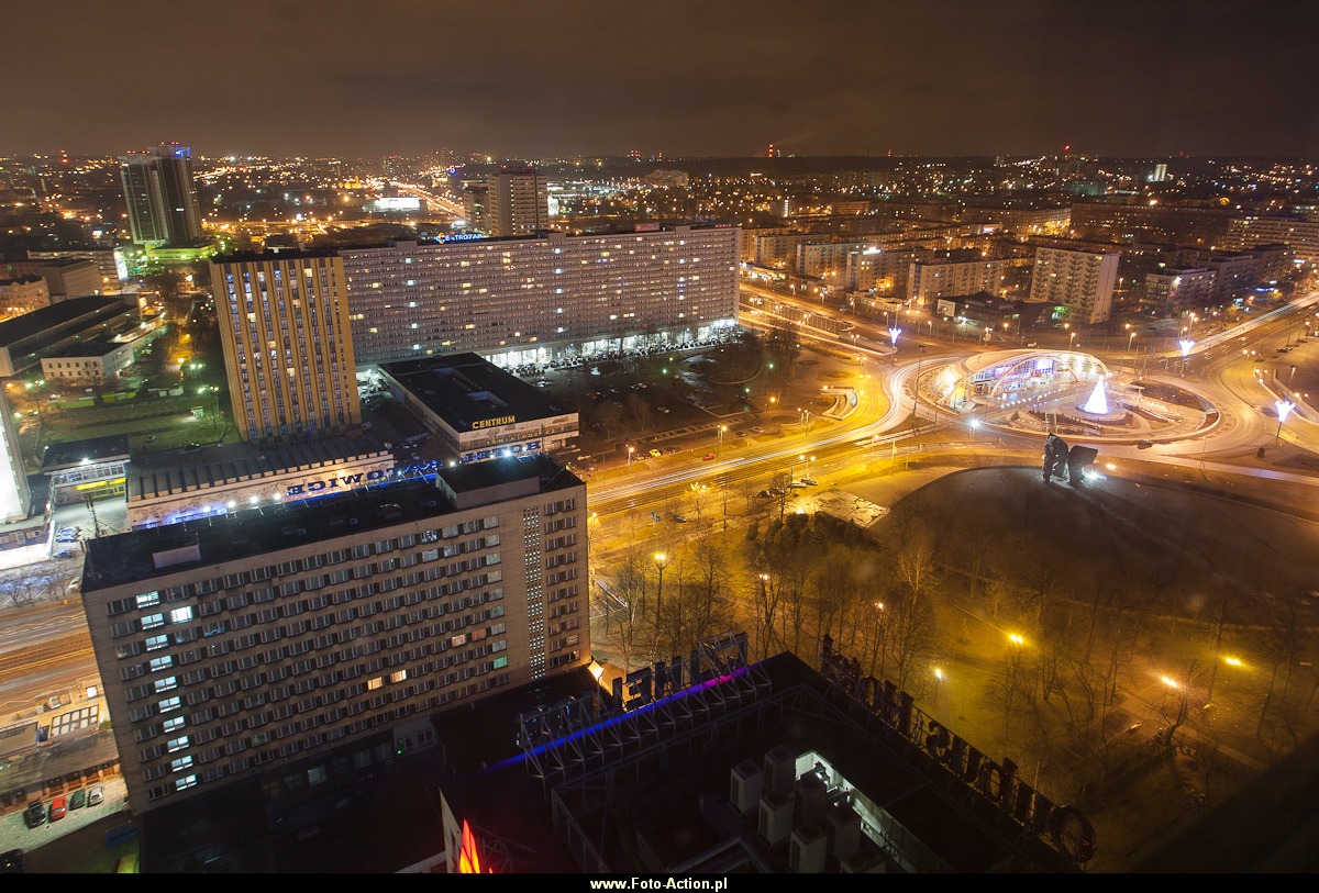 Tym razem zdjęcie z ubiegłego roku, noc w centrum Katowic, w centrum kadru remontowany dworzec PKP