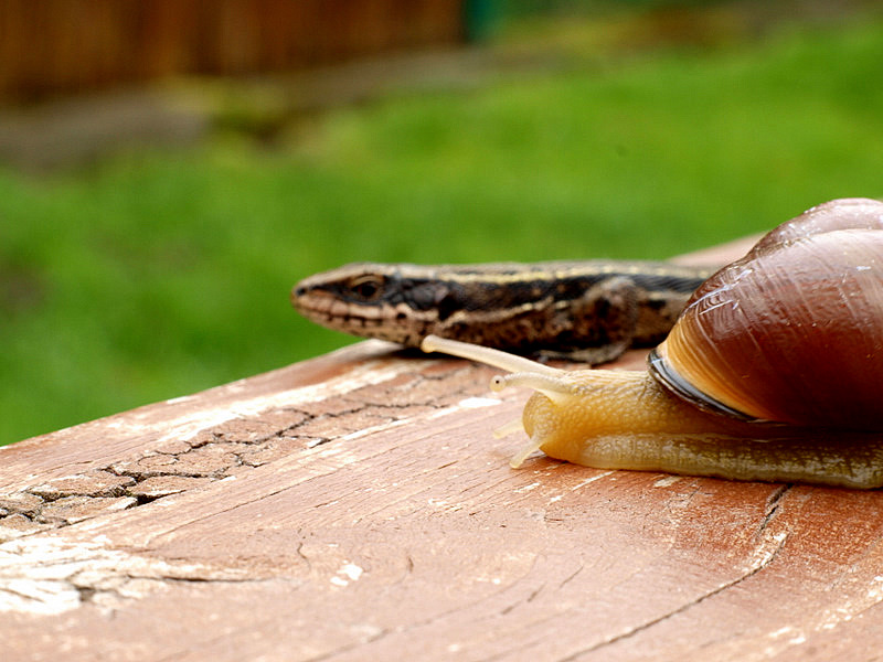 56. Był wyścig królika z ślimakiem - teraz jaszczurka ze ślimakiem.