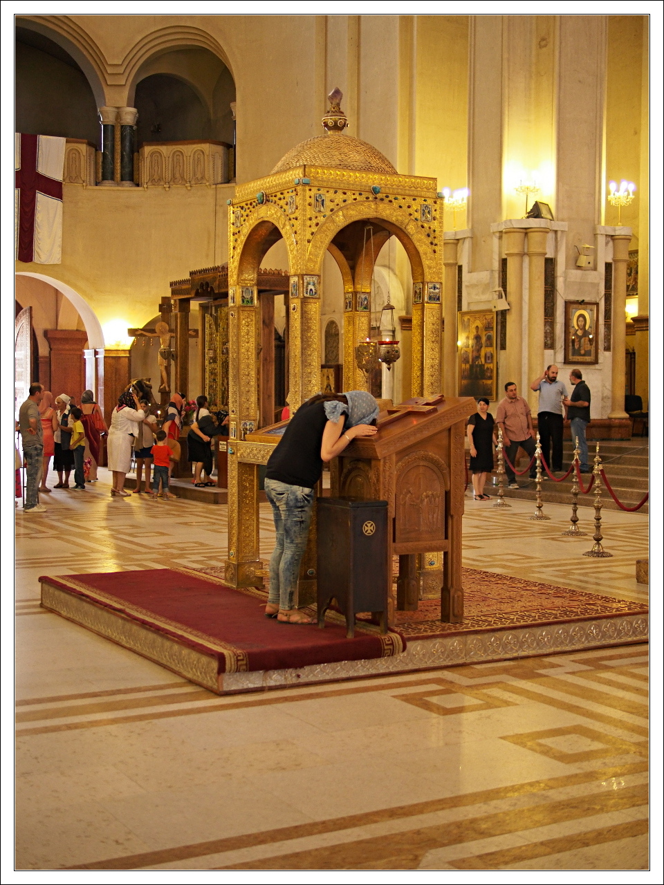 Po tygodniowej, wymuszonej okolicznościami zewnętrznymi przerwie wracamy do Gruzji i pozostajemy jeszcze na chwilę w katedrze Cminda Sameba. Bo zwiedzając gruzińskie świątynie próbowałem podpatrywać jak modlą się Gruzinki i Gruzini. Bo pewne zwyczaje nieco inne są od naszych.