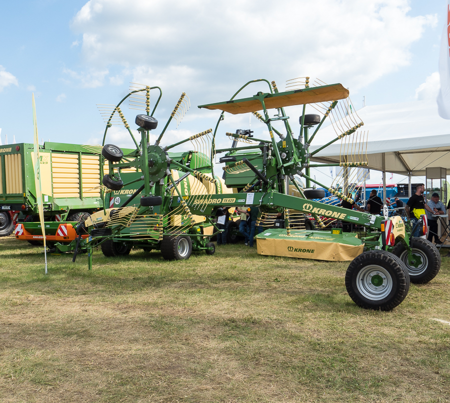 Stoisko firmy Krone. Na pierwszym planie zgrabiarka SWADRO TS 620