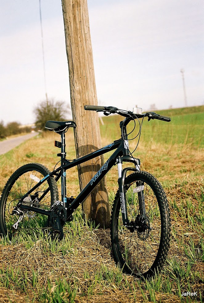 Słup się oparł o rowerek: