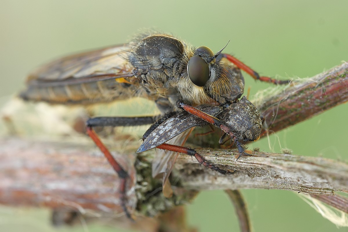 Łowik ze schwytanym sprężykiem - podrzutem myszatym. Stack z klatek filmu mp4 wykonanego Panasonikiem GX-8 przy użyciu funkcji Post Focus: