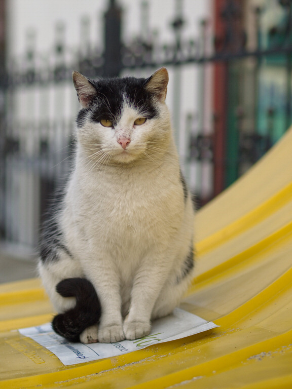 To i ja prezentuje pewna dostojna i powazna nad wyraz osobistosc kociego swiata. Zapoznany w Krosnie, podczas porannego obchodu wlosci. Tu na posterunku :)