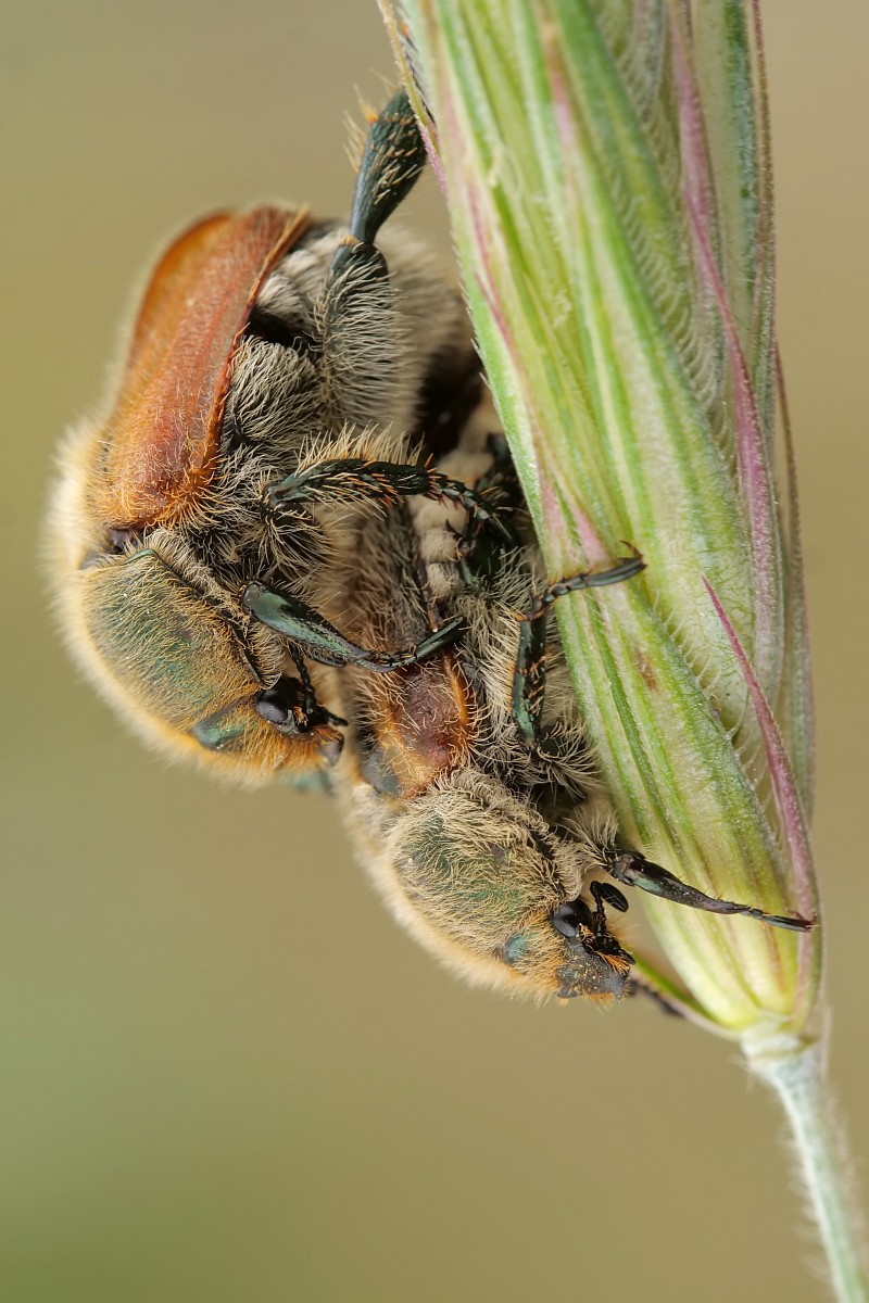 Chrząszcze w miłosnej ekstazie. Gatunku niestety nie znam - podobne do pospolitej ogrodnicy niszczylistki, ale znacznie obficiej owłosione: