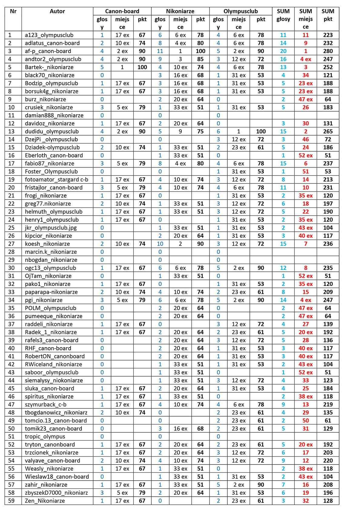 Na forum Nikoniarze wygrał af-p z canon-board, drugie miejsce zajął koesh z nikoniarzy, trzeci był andtor2 z Olympusclubu