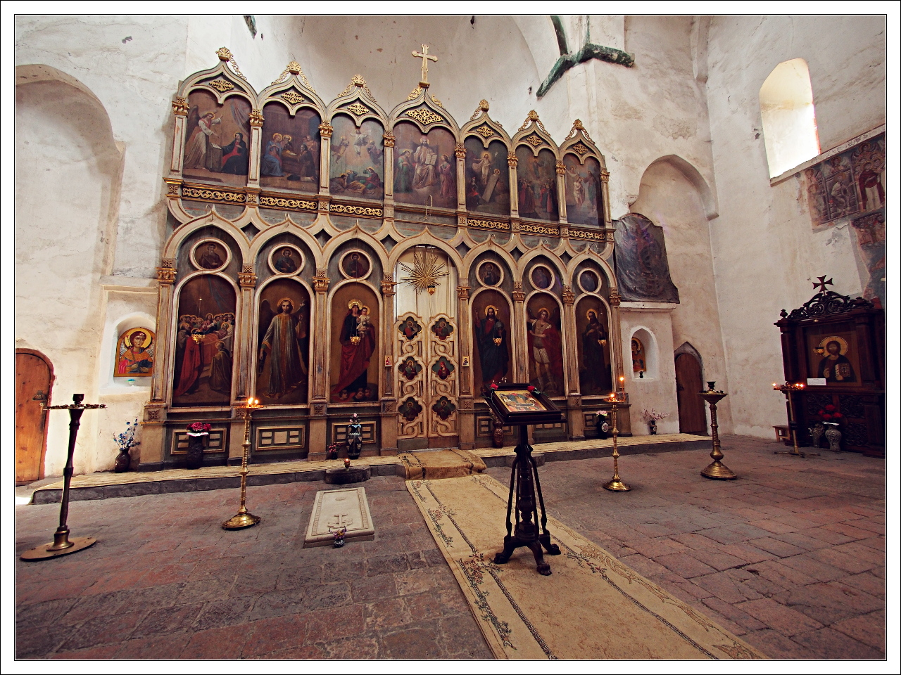 Wnętrze cerkwi - jak łatwo zauważyć ikonostas znacznie okazalszy od tych średniowiecznych z Ikalto czy Alaverdi
