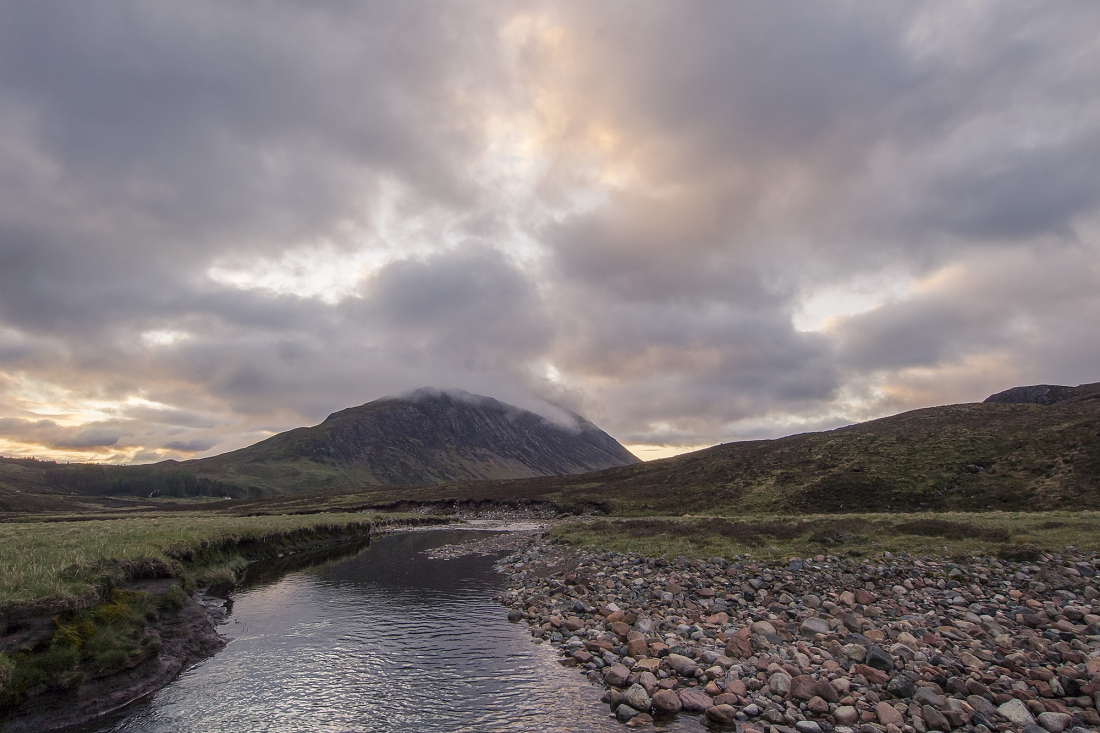 Dziś spacer po River Etive. Spory kawałek doliny Glen Etive można przejść po tej rzece, albo jak kto woli potoku. My tak właśnie zrobiliśmy. (Tym razem tylko góry i potok...)