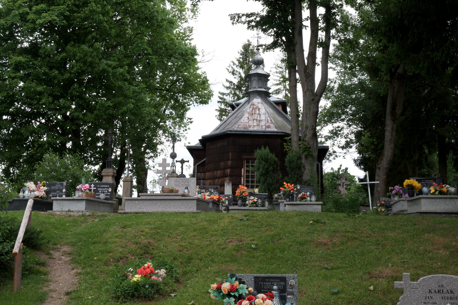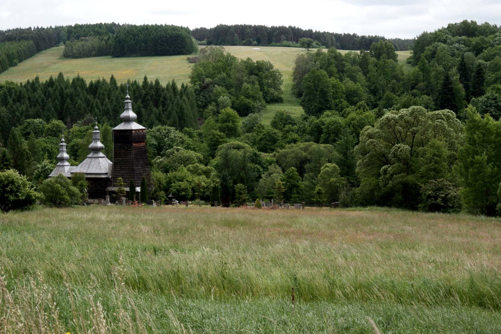 3414. tu w środku zdjęcia na granicy lasu da się spostrzec wieżyce z cmentarza w Beskidku