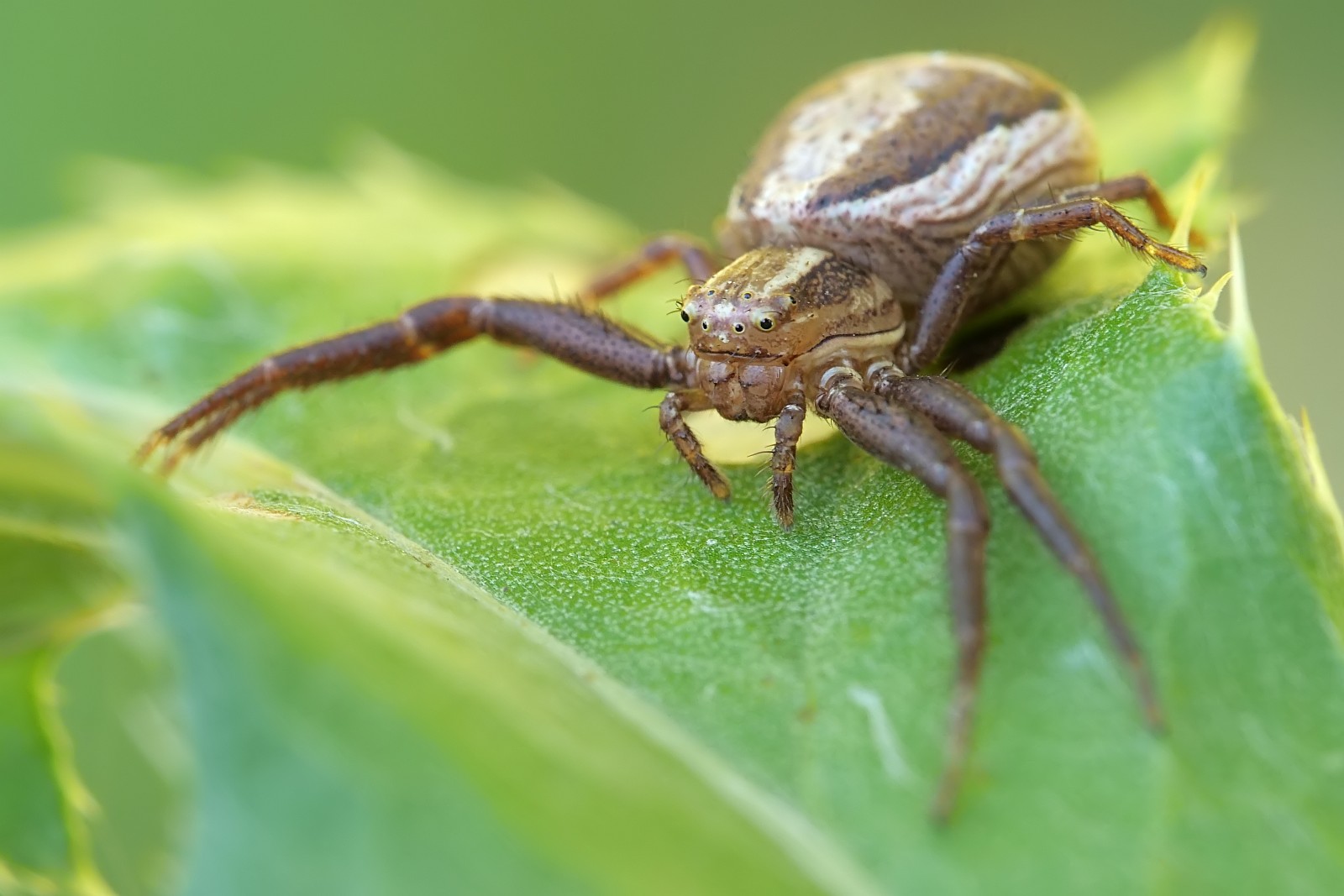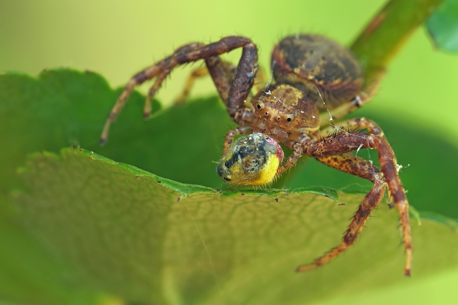 Młody bokochód z upolowanym mniejszym od siebie pająkiem: