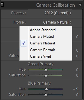 W panelu Camera Calibration wybrałem profil kolorystyczny – Camera Natural i skorygowałem nieco odcień koloru niebieskiego (suwak Hue).