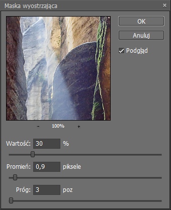 Po zmniejszeniu lekkie wyostrzenie maską wyostrzającą: