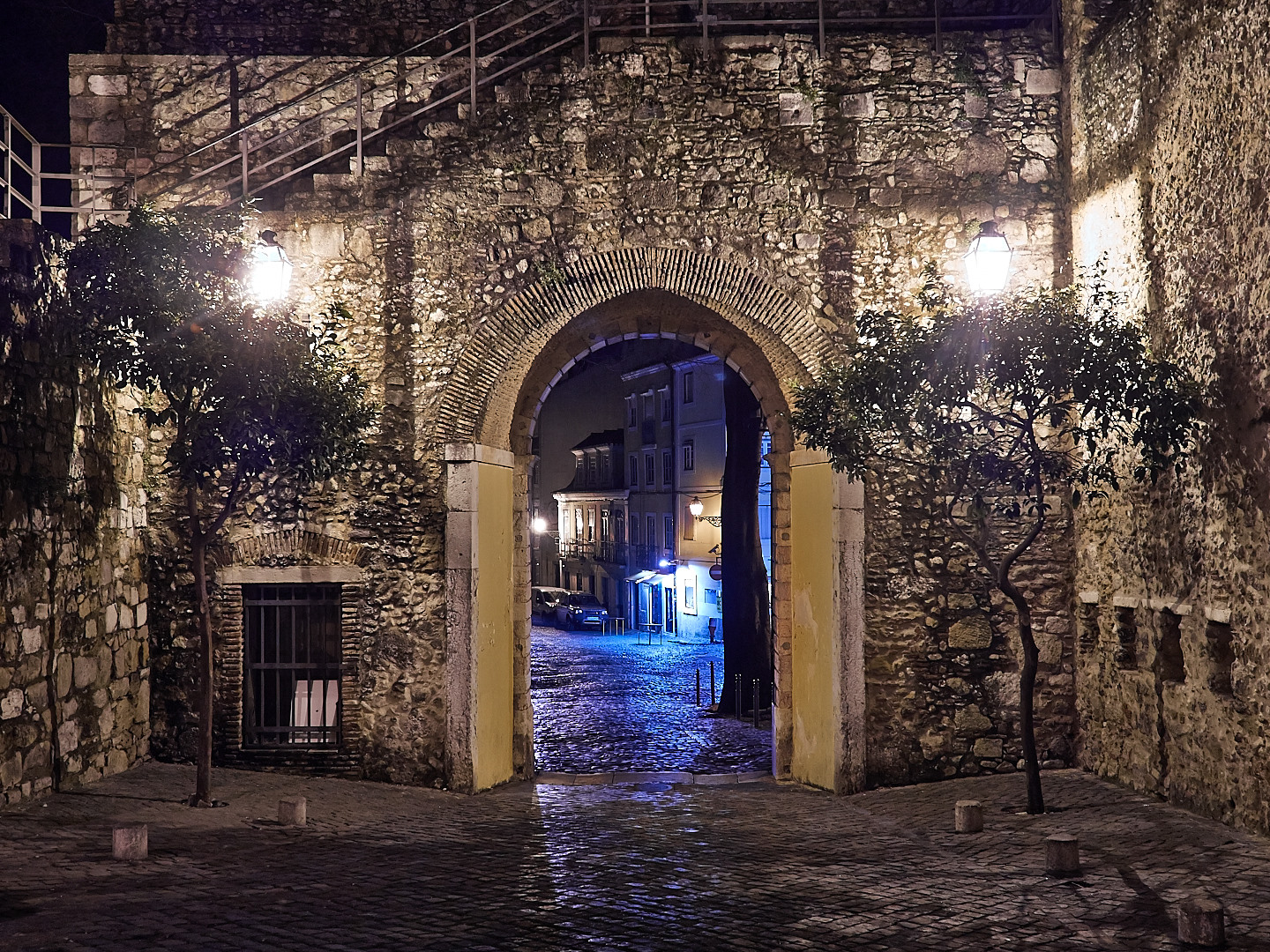 Zdjęcie zrobione w nocy, w starej części Lisbony, po spacerze wracaliśmy powoli do cywilizacji, zrobione przy wyjeżdzie z warownej części wzgórza z ręki.