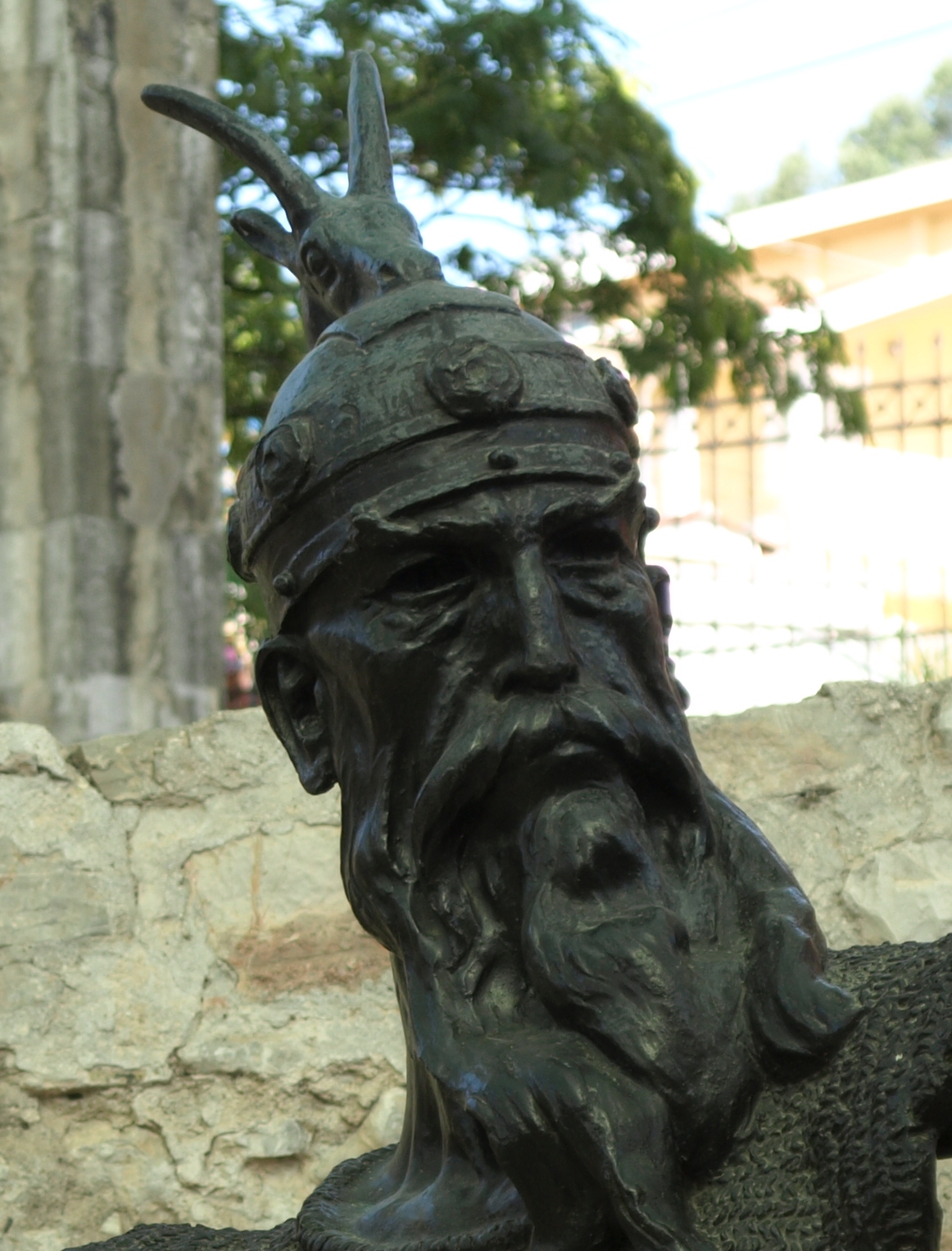 To zapewne bohater narodowy Albanii - Jerzy Kastriota, ma chyba kilkanaście, jak nie kilkadziesiąt podobnych pomników w całym kraju.