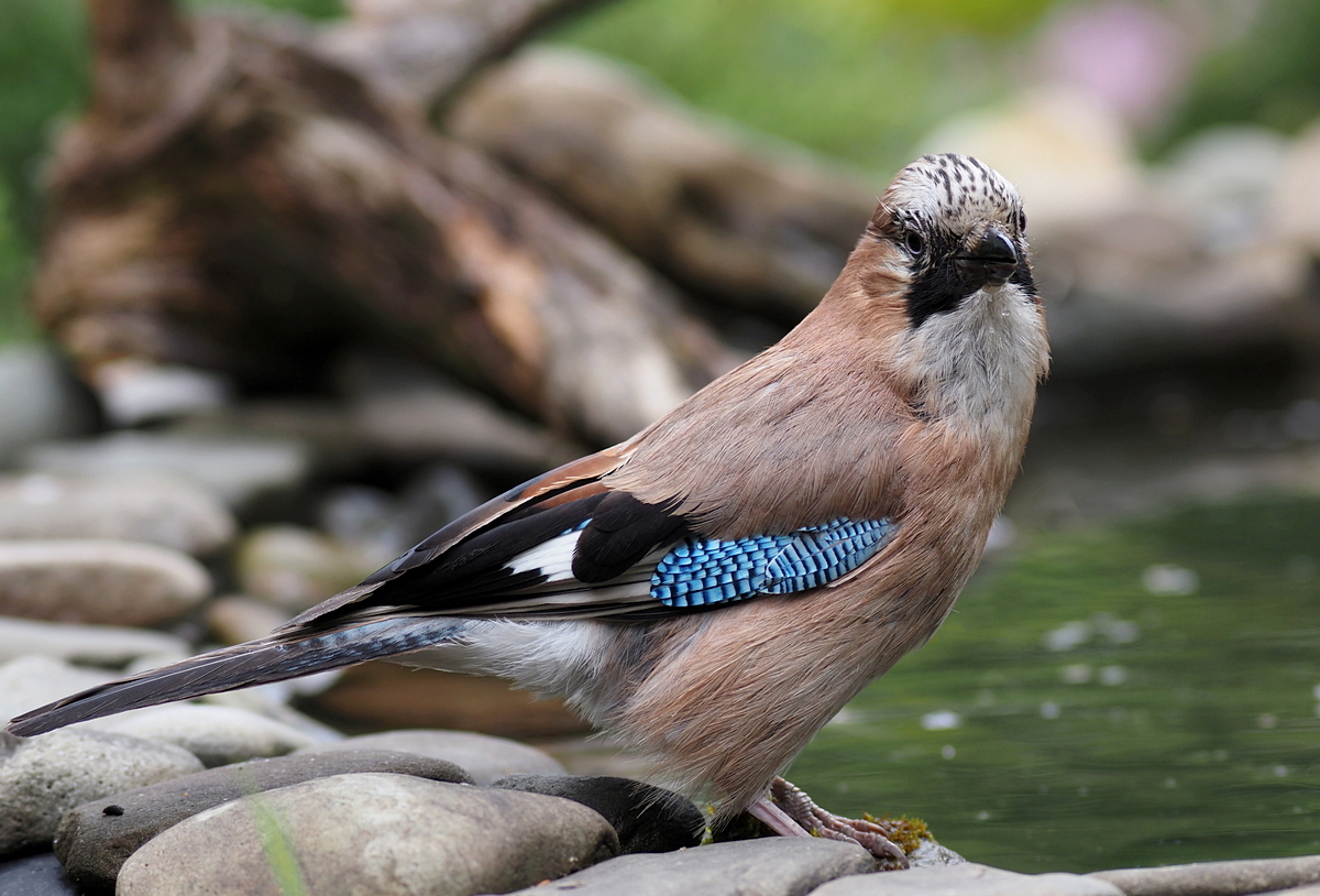 Sójka coraz odważniej pozuje. Zdjęcia przed i po kąpieli.