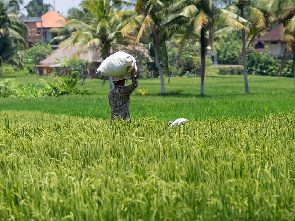 Bali to oczywiście też pola ryżowe. Te były właściwie w centrum miasta, skręcało się w boczny zaułek, przeciskało między zabudowaniami i naszym oczom ukazywał się taki widok: