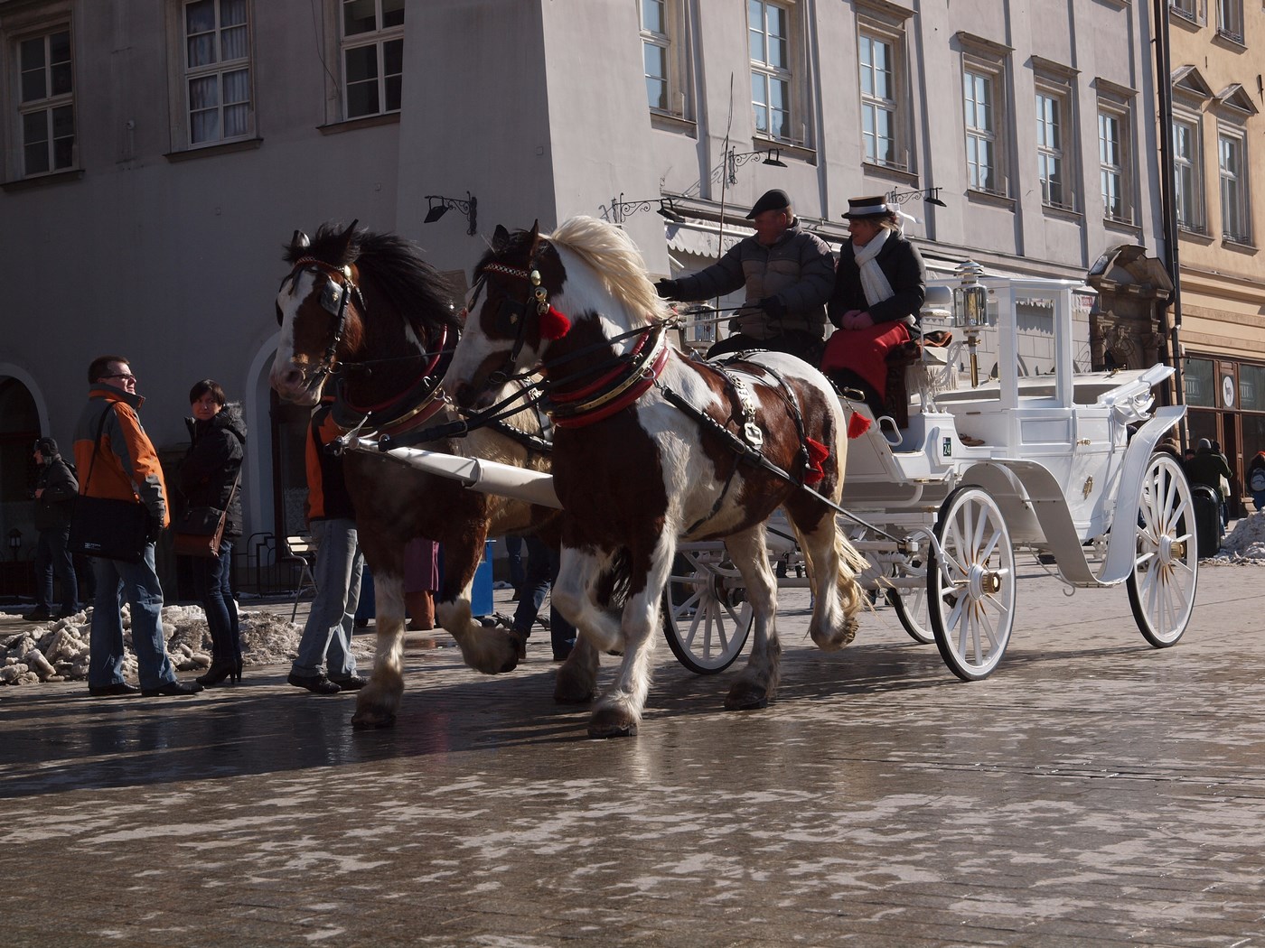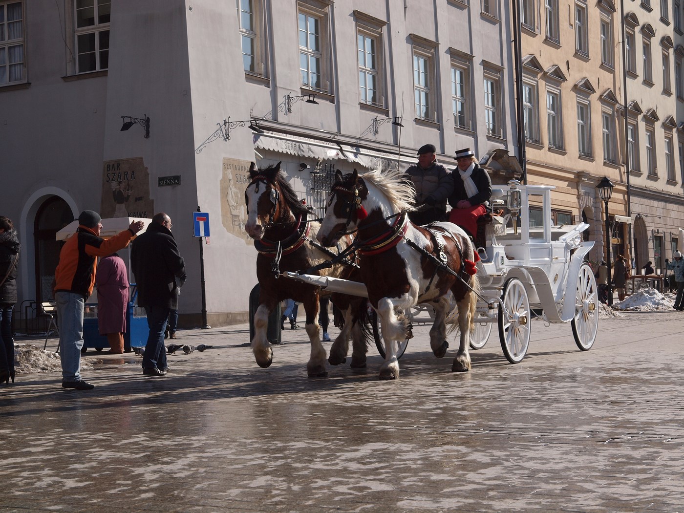 - zrobić zdjęcie sekundę wcześniej (dorożka byłaby mocniej na prawo) wraz z przekadrowaniem i usunięciem całej lewej strony