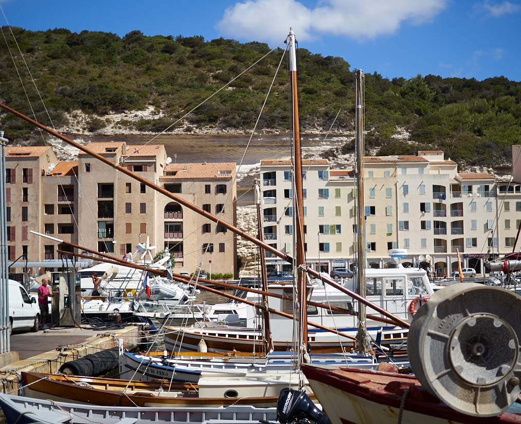 W trakcie urlopu miałem możliwość skorzystania z jednodniowej wycieczki do Bonifacio na Korsyce. Dotarliśmy tam od południowej strony, promem z Sardynii. Ponieważ była to tzw. zorganizowana wycieczka, to sposobność swobodnego szlajania się po miejscówce została mocno ograniczona. Niemniej jednak kilka zdjęć udało mi się zrobić, choć ich jakość nie powala. Dzień był niezwykle upalny, niebo prawie bezchmurne.