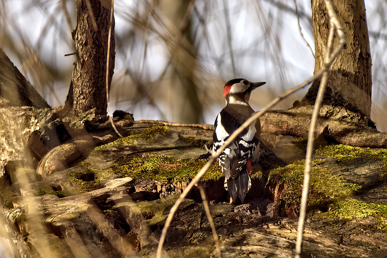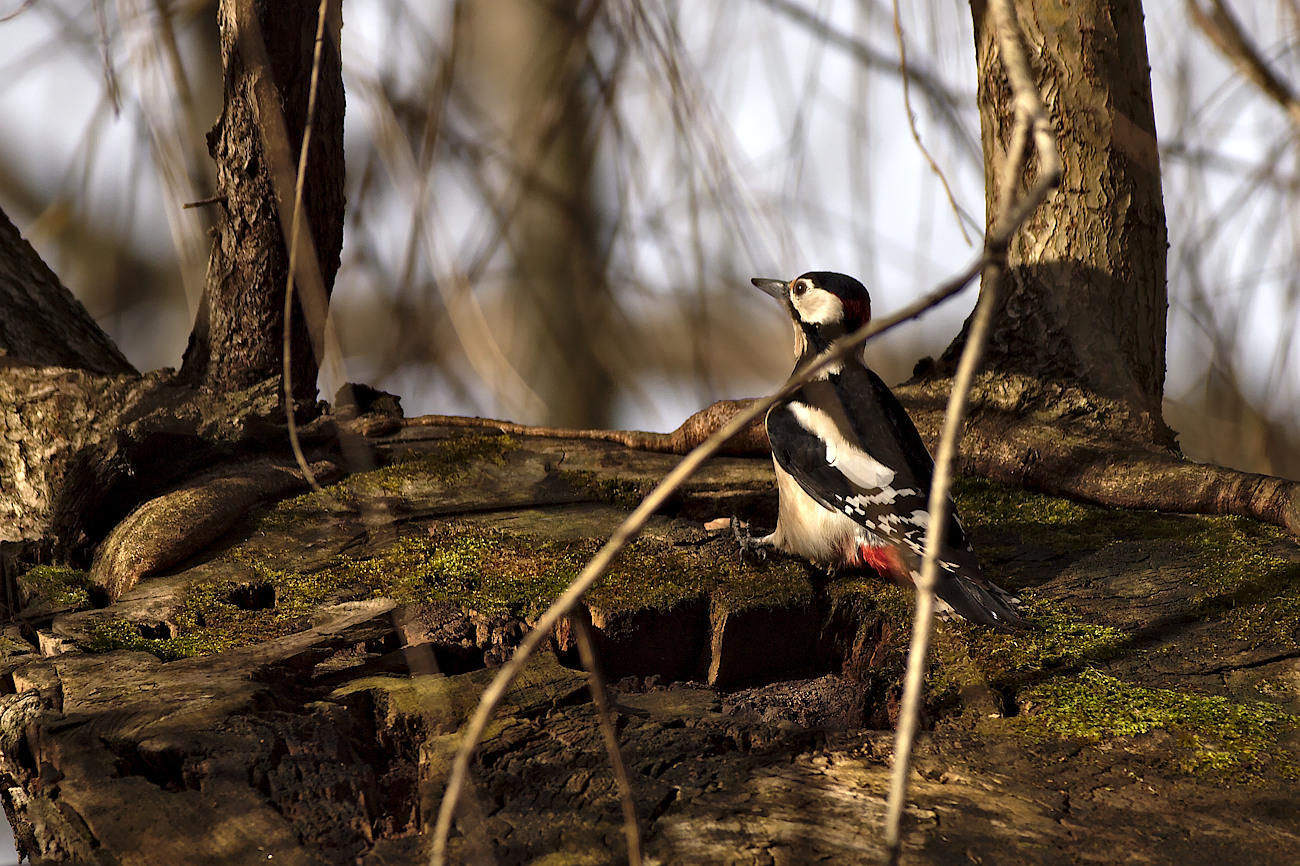 A tak w ogóle, to dzięciołki z przygodami robione. Stoję sobie schowany za drzewem i robię zdjęcia ptaszkom. W pewnym momencie z plecami słyszę samochód. Policjanci na patrolu. Chwilę stali, potem zgasili silnik. W tym momencie dzięcioły odleciały.