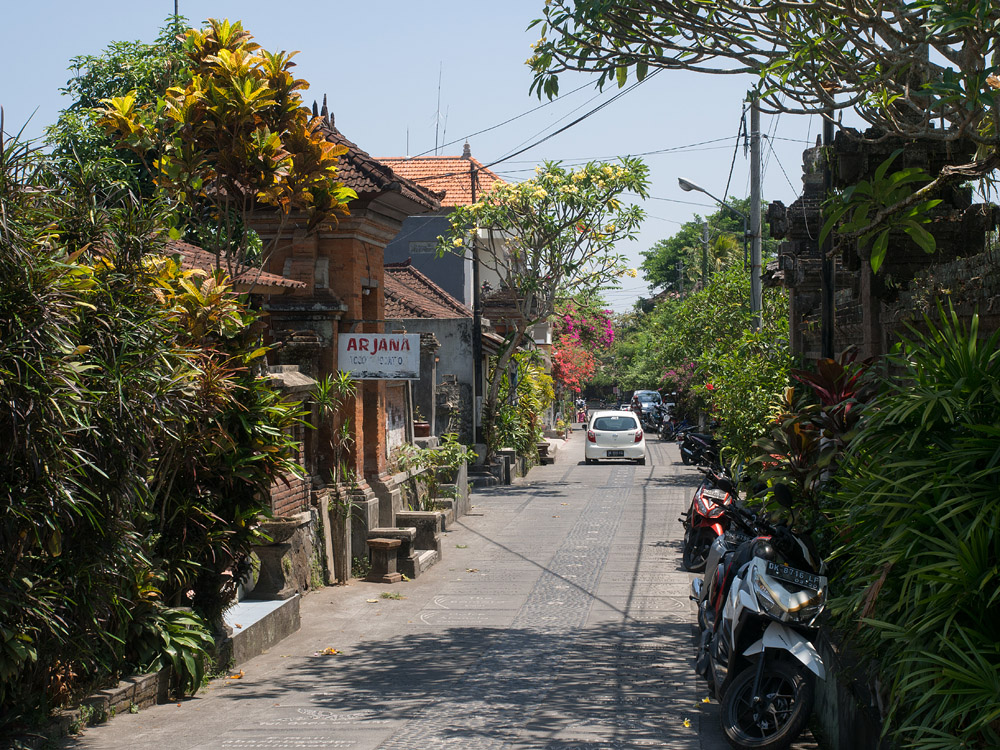 Tak wygląda typowa boczna uliczka na Bali. Nie jest to żadna reprezentatywna ulica.