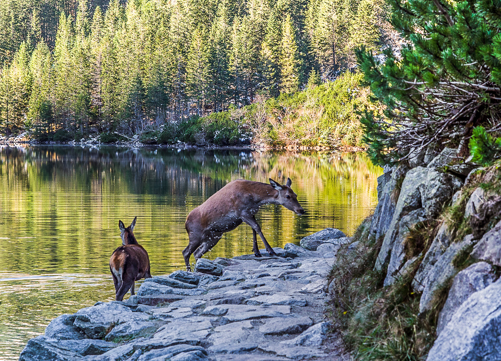 Wcale się nie bały, myślałem że jak się poruszę to zaraz uciekną ale one się mną nie przejmowały. Kolejne spotkałem w powrotnej drodze - już tej asfaltowej z Morskiego Oka. Ludzie podchodzili bardzo blisko i robili zdjęcia. Generalnie ludzi dzisiaj było bardzo mało.