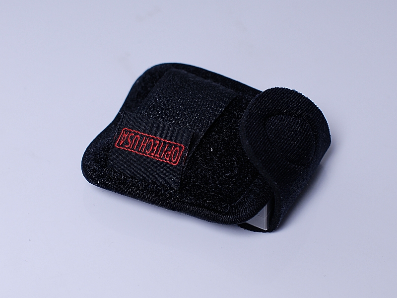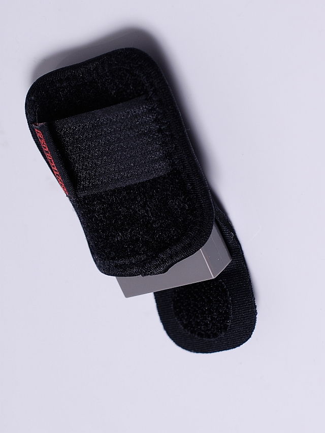 To z przodu, to taka szlufka zamknięta na rzep. Dzięki której możemy przymocować ją do jakiegoś cienkiego paska.