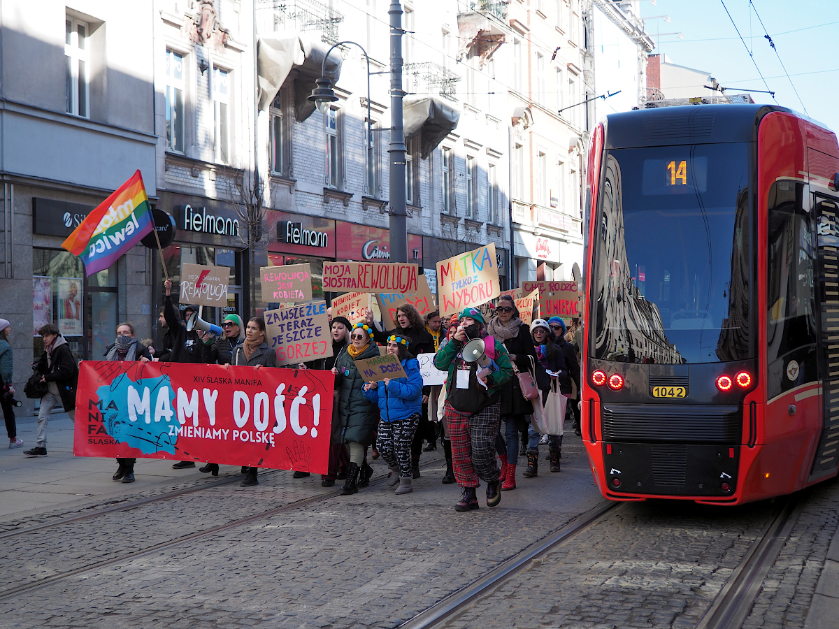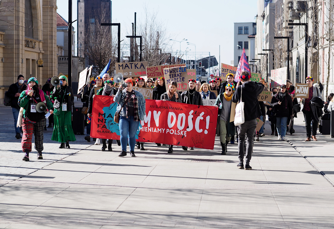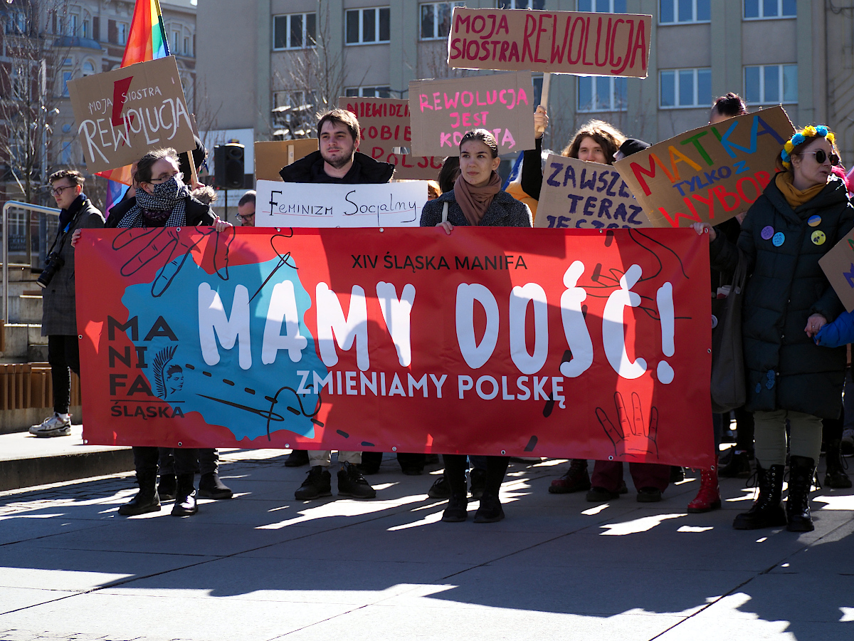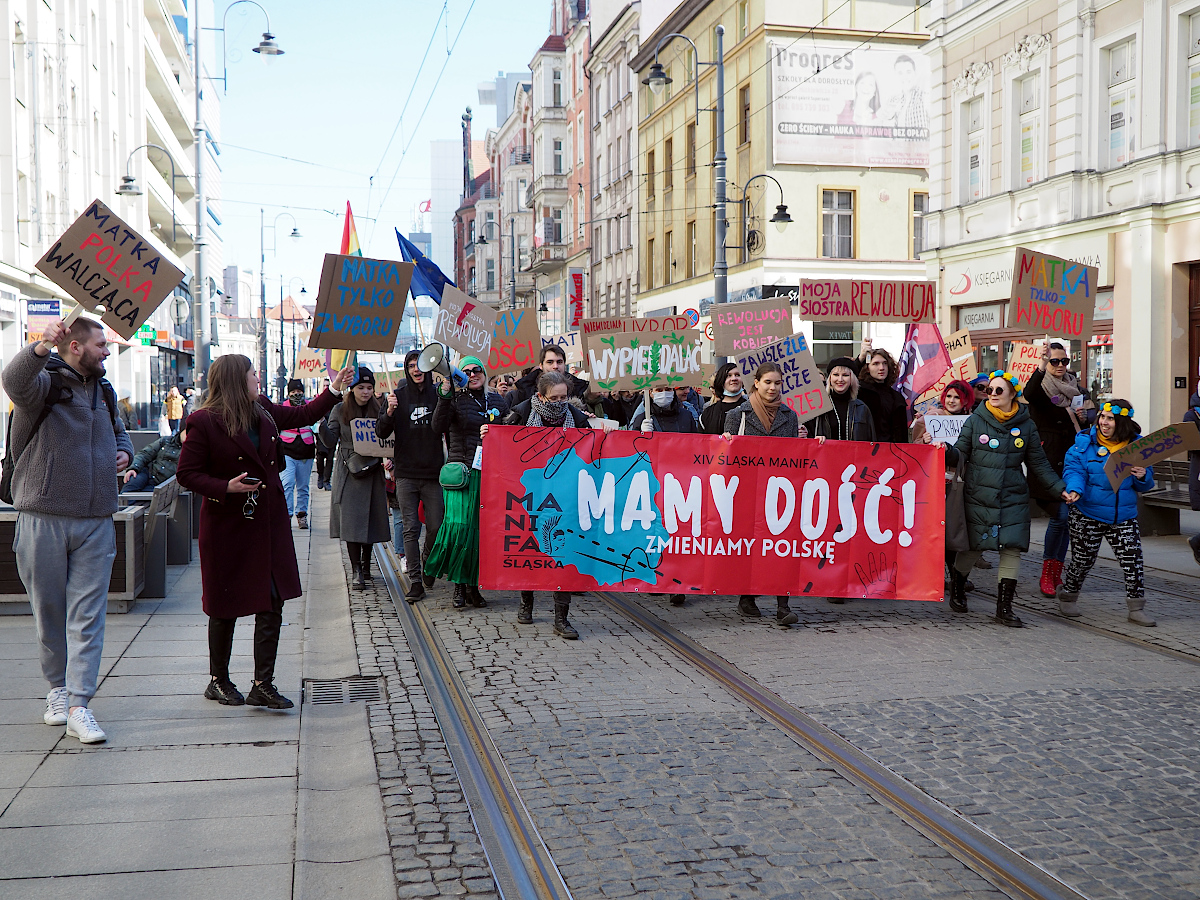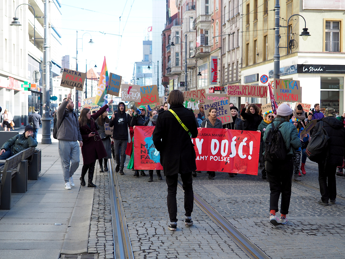 Podobają mi się portrety uczestników marszu w akcji. Trzymane plansze dodają mocno kontekstu.