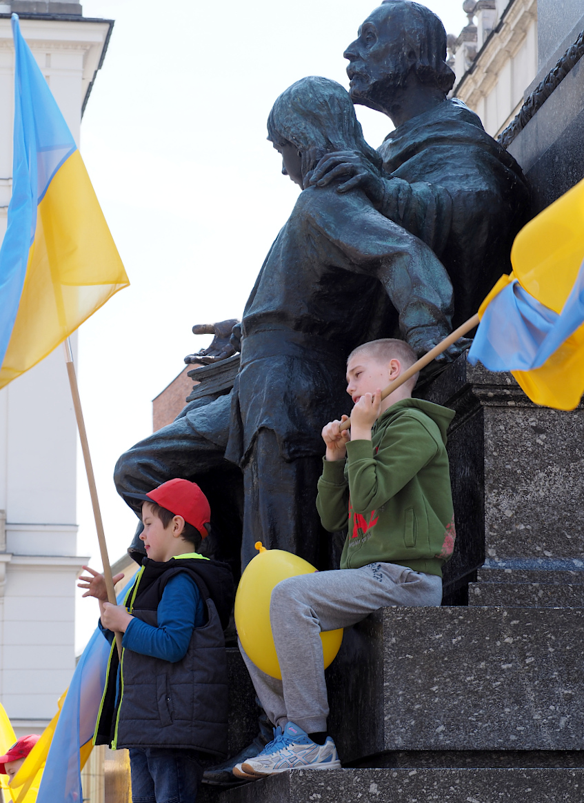 Protest przeciw wojnie i podziękowania dla nas polaków za wsparcie.
