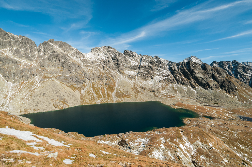 Hińczowe Pleso i dolina Mięguszowiecka, po prawej Szatan i Baszty