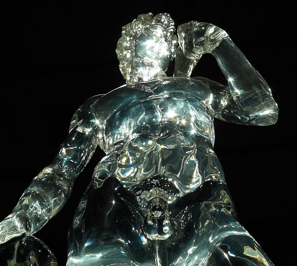 Gwoli wyjaśnienia dodam, że koncentrowałem się na takim ustawieniu (co zajęło mi kilka minut ze względu na przeczekanie aż nikt w obiektyw nie będzie właził), aby reflektor od tyłu świecił na głowę Dawida - rzeźby, którą w proporcji 1:1 ze szkła w Hydropolis umieszczono.