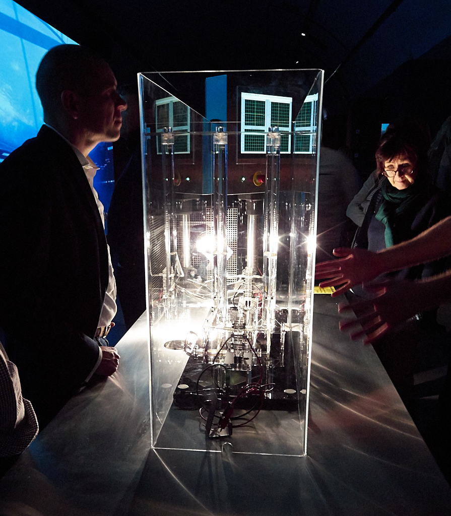 Następna sala to istne laboratorium doktora Bulgota (nazwa zmyślona przeze mnie). Niektórzy z obawą zerkali na eksperyment zagotowania się wody przy niskim ciśnieniu, przejście w lód, itp. (H11). Inni patrzyli na schemat elektrowni wodnej (H12).