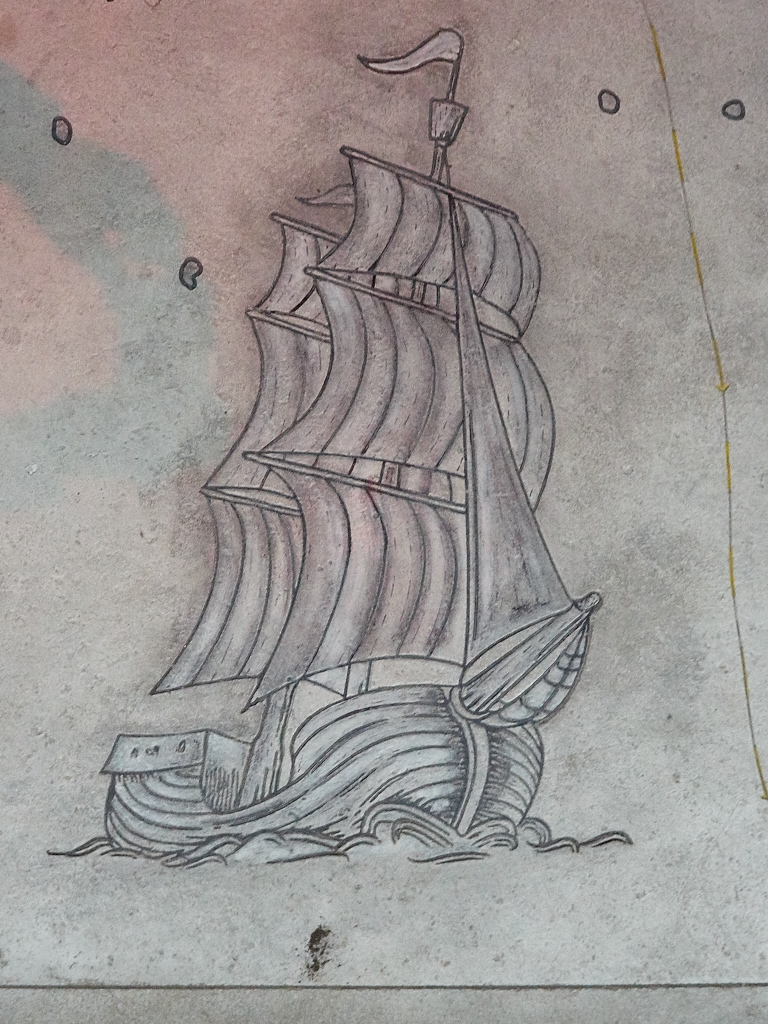 Widnieją na nim rysunku przyrządów murarskich, z których dwa: cyrkiel i węgielnica została zapożyczona przez masonerię. Węgielnica to inaczej ekier lub jak kto woli kątownik. Służyła do wyznaczania kąta prostego. Te dwa przedmioty występując w symbolice masońskiej są ze sobą połączone. Niedaleko od miejsca powyższego herbu, na posadzce można znaleźć płytę, gdzie te przyrządy są bardzo dobrze widoczne [MK2].