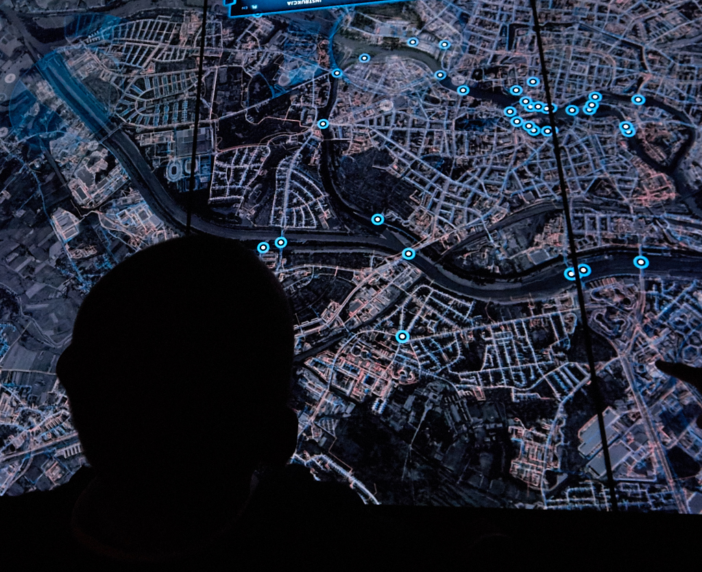 W innej sali mapa Wrocławia . Kołka można przesuwać i za pomocą zakładek wybierać podgląd np. układu wodociągów itp.