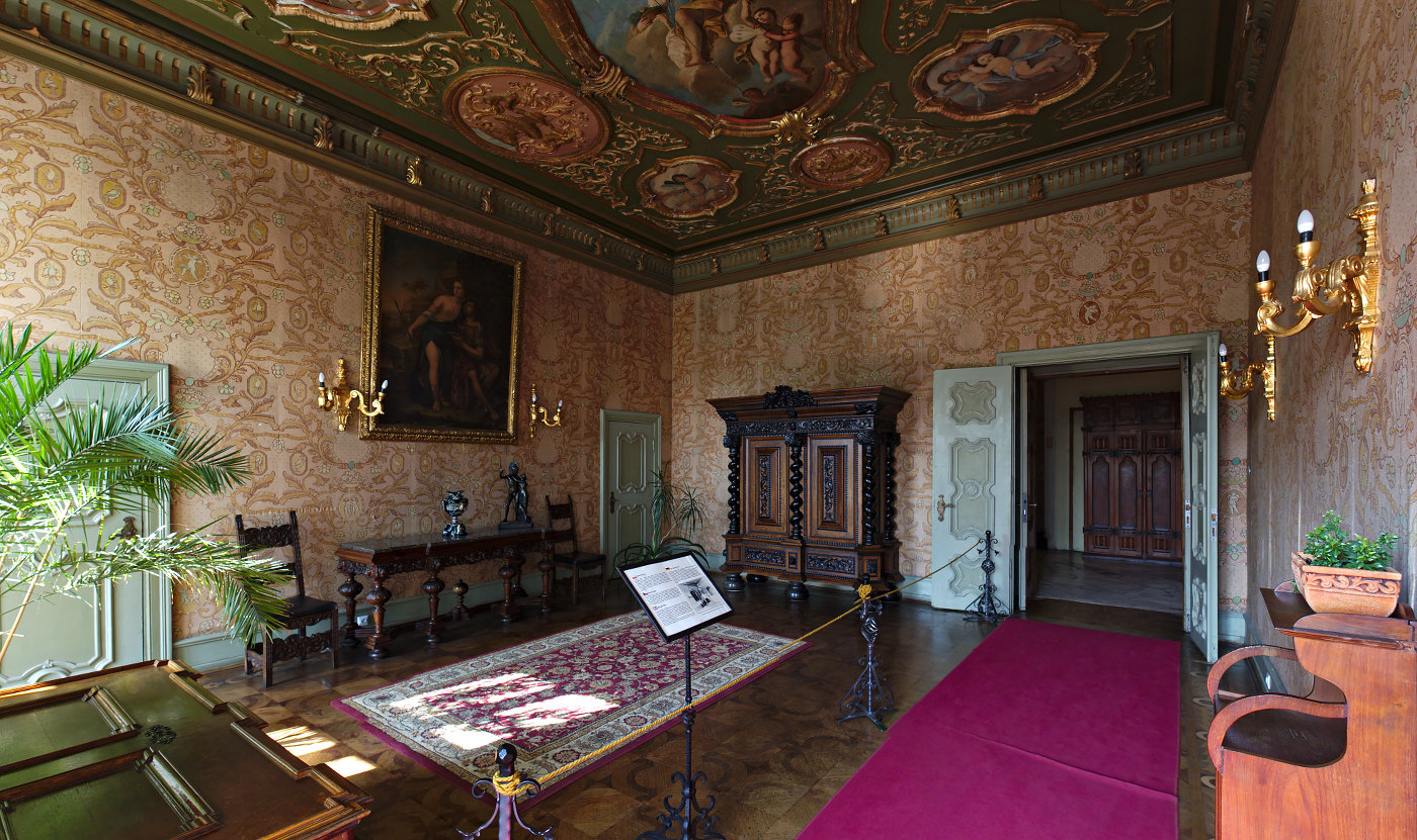 Komnata bardzo zniszczona przez nazistów. Została przygotowana jako pokój osobisty Hitlera.