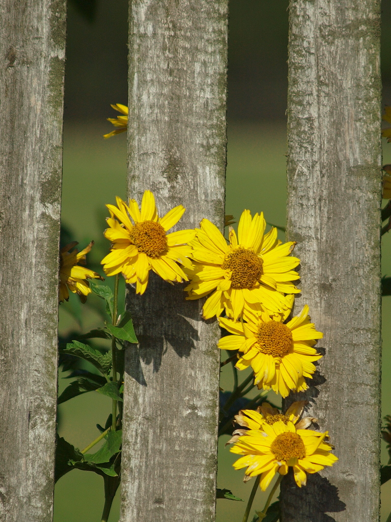 Sloneczniki miedzy sztachetami fajne :-)