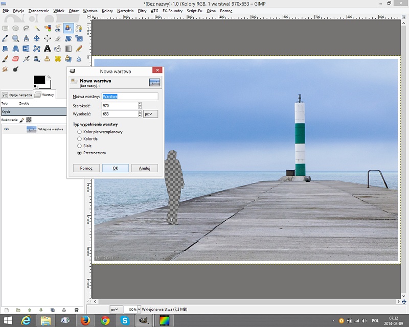 Ukryłem/zlikwidowałem zaznaczenie i otworzyłem nową (przezroczystą warstwę),
