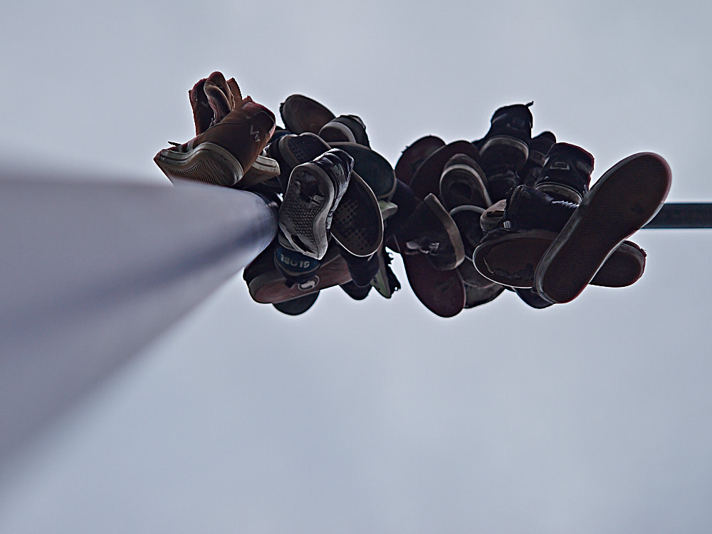 BTW: powiedziano mi kiedyś, że miejsce, w którym wiszą w ten sposób buty to ponoć miejsce spotkań dilerów narkotyków. Ktoś może potwierdzić taką wersję?