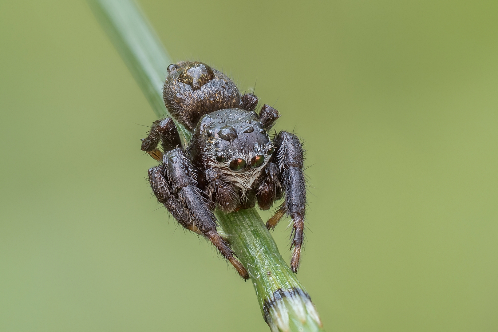 Zmiana tematu by ważkami nie zanudzić, nieduży pajączek osiągający od 6 do 8 mm Pyrgun nazielny. Tym razem trochę bardziej ruchliwy mi się trafił. (1080p)