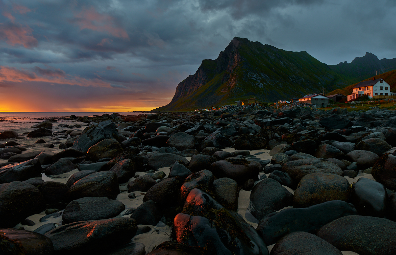 Pięknie światło muska te kamienie na plaży.