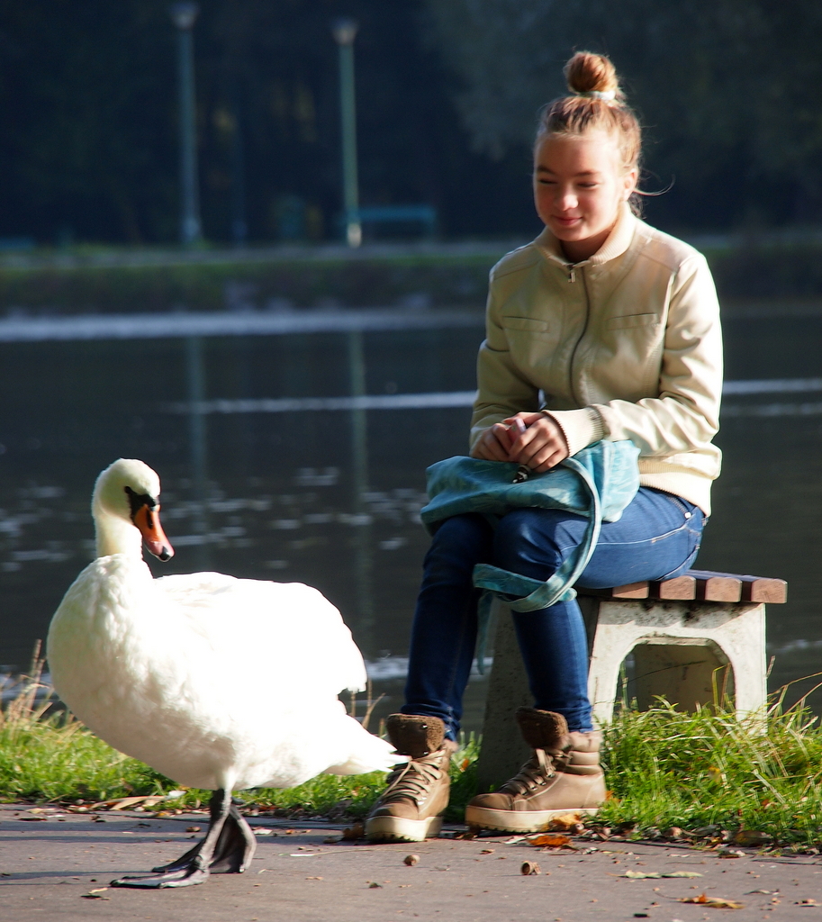 nad zalewem w Nowej Hucie miałem fajnego kompana do chodzenia. okazuje się że ten biedny łabędź ma połamaną szyję i nie jest uznawany przez swoich ... dziobią go i nie dopuszczają do jedzenia. na szczęście dzięki ludziom udaje mu się przeżyć i nawet stwierdziłem że jest najgrubszy w stadzie:grin: