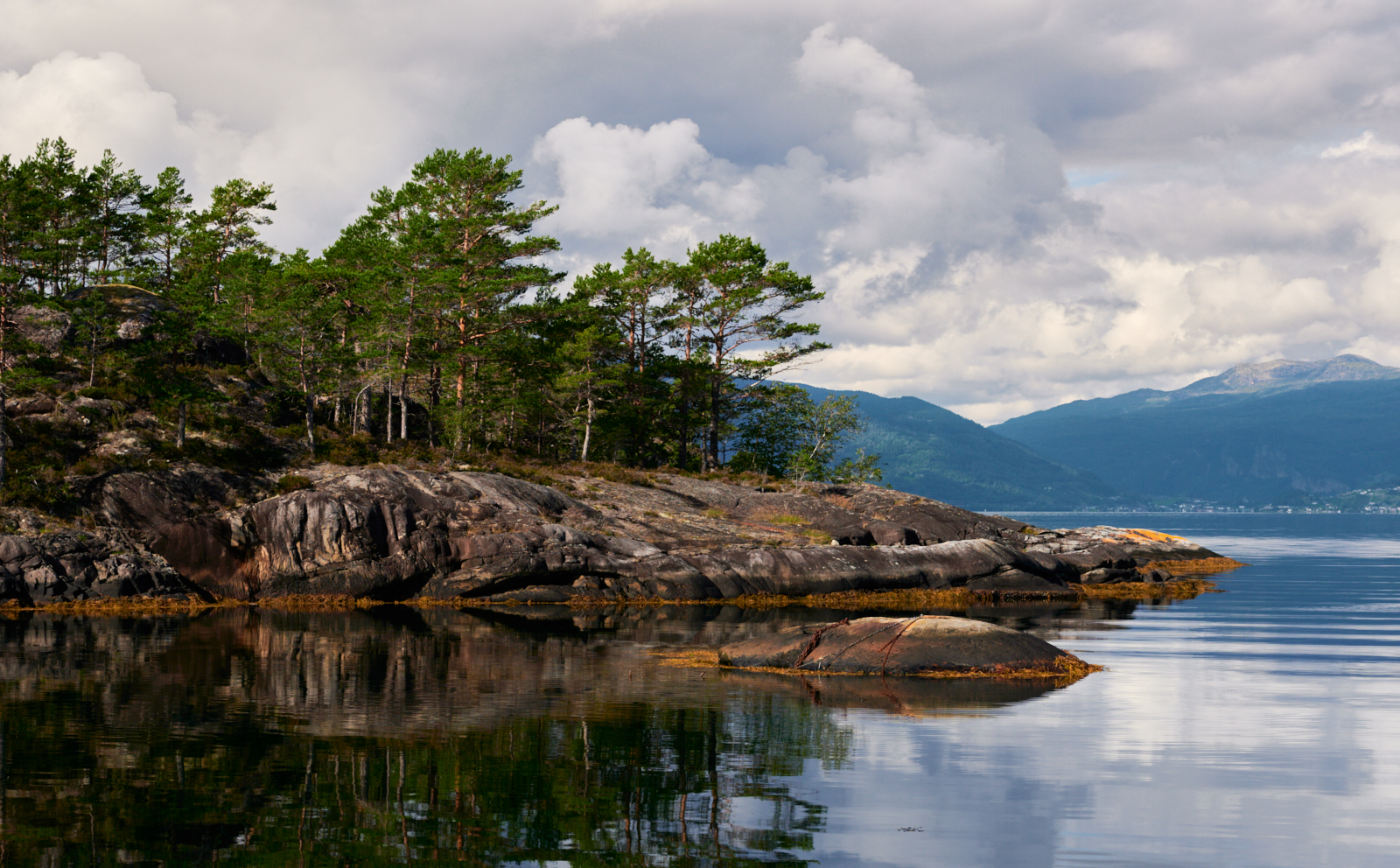 1161 - bardzo ładny landszaft, urokliwy. Drzewa na brzegu fiordu supermalownicze, wykwintne.