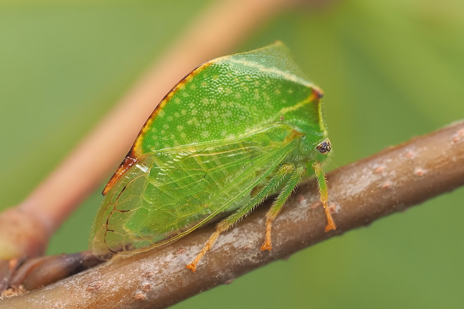 Maleńka larwa rośliniarki tuż po linieniu na które niestety się spóźniłem (stack z 3 klatek):