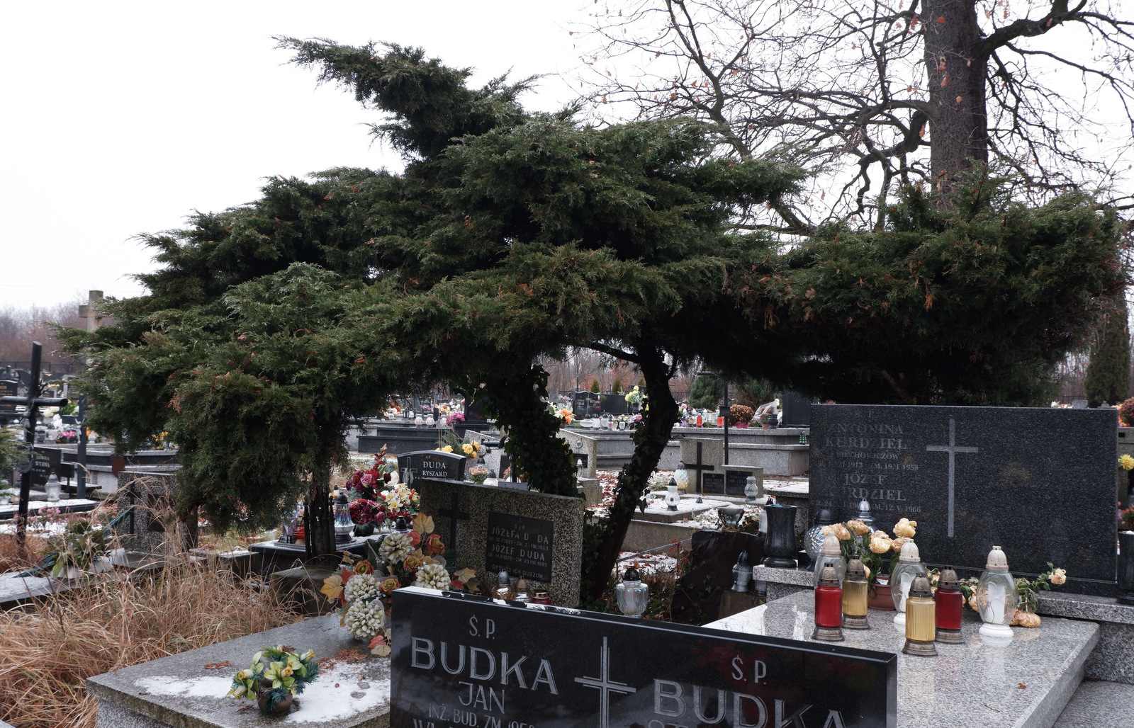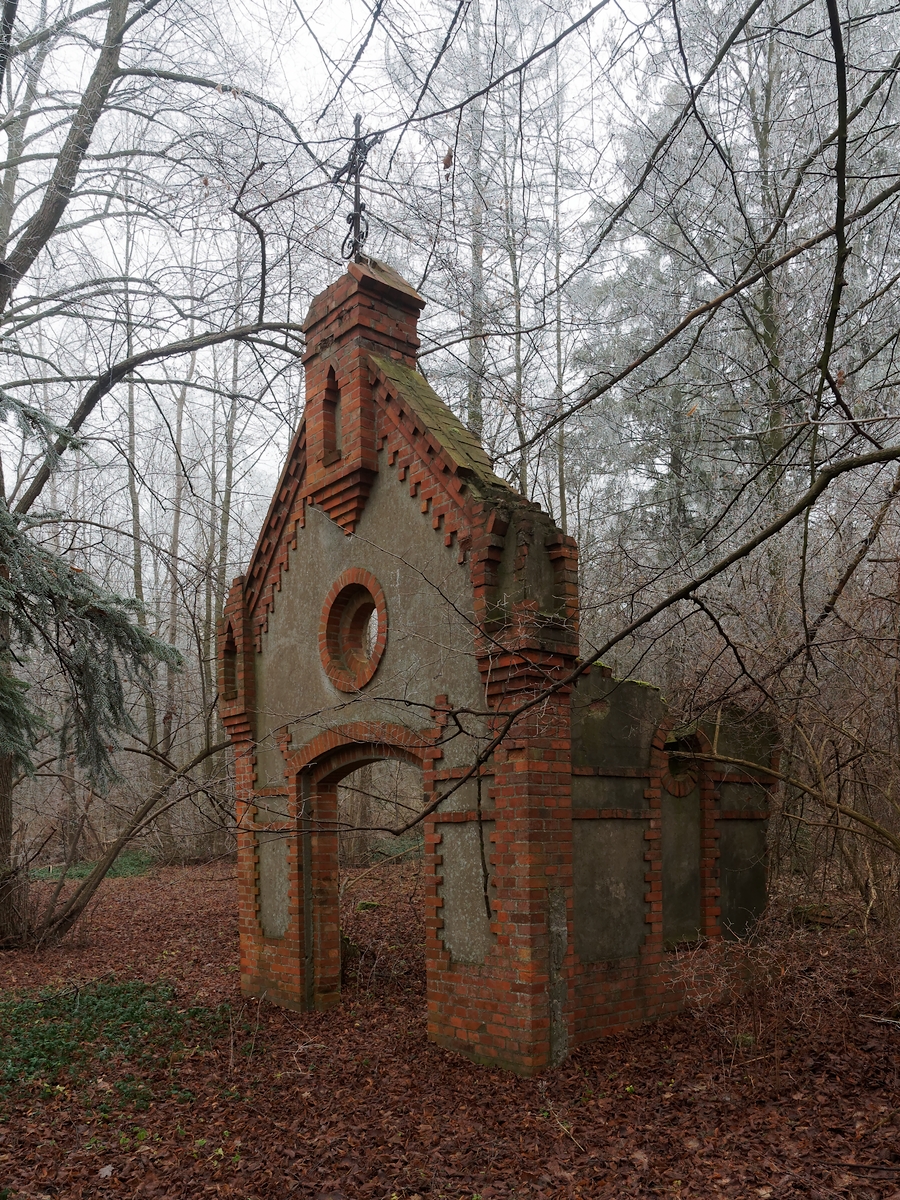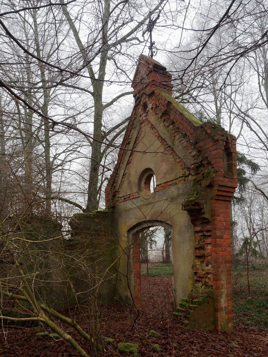Zniszczona ewangelicka nekropolia rodziny Oehlrich w Białutach.