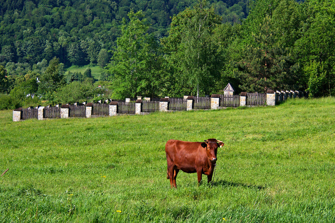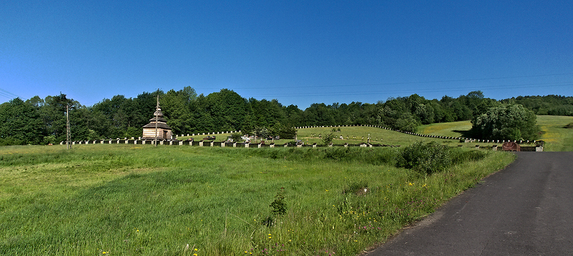 Cerkiew wsrod zieleni piekna, wolowina na tle cmentarza trafila sie...:-)