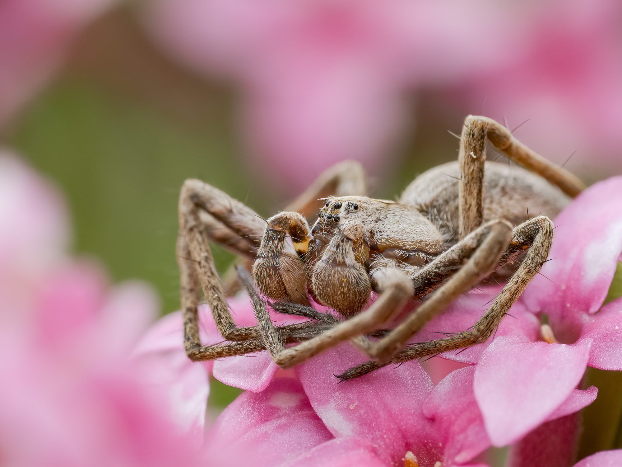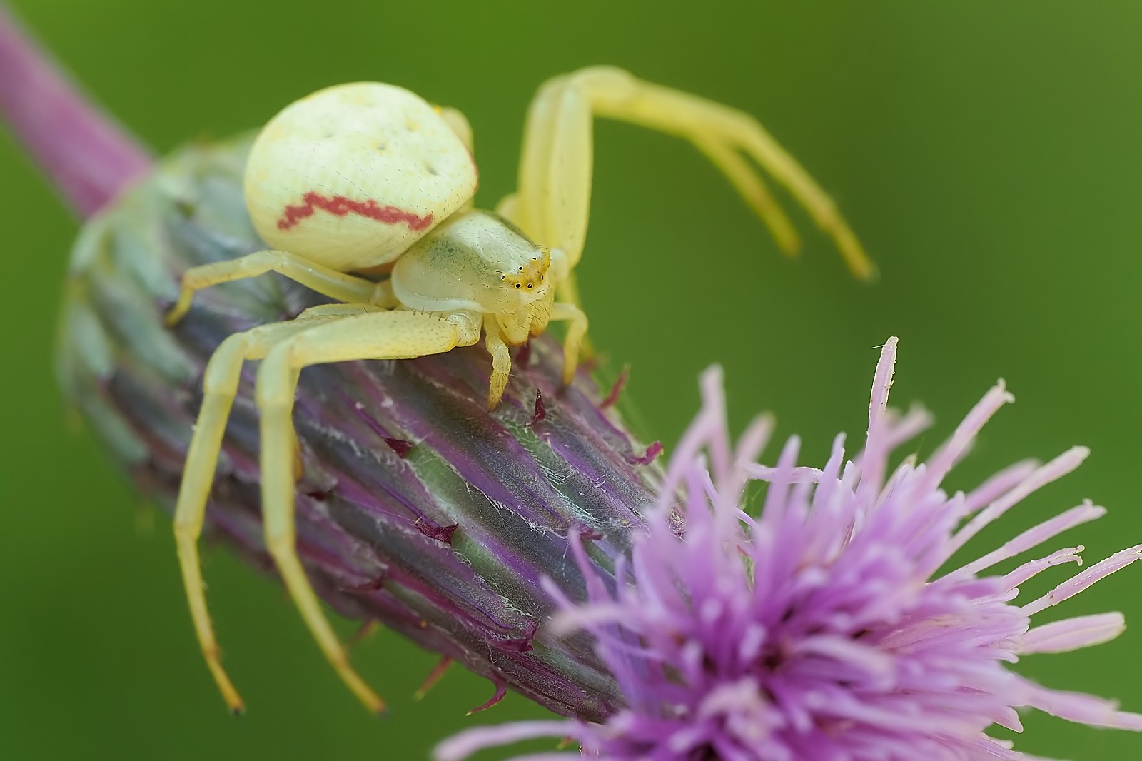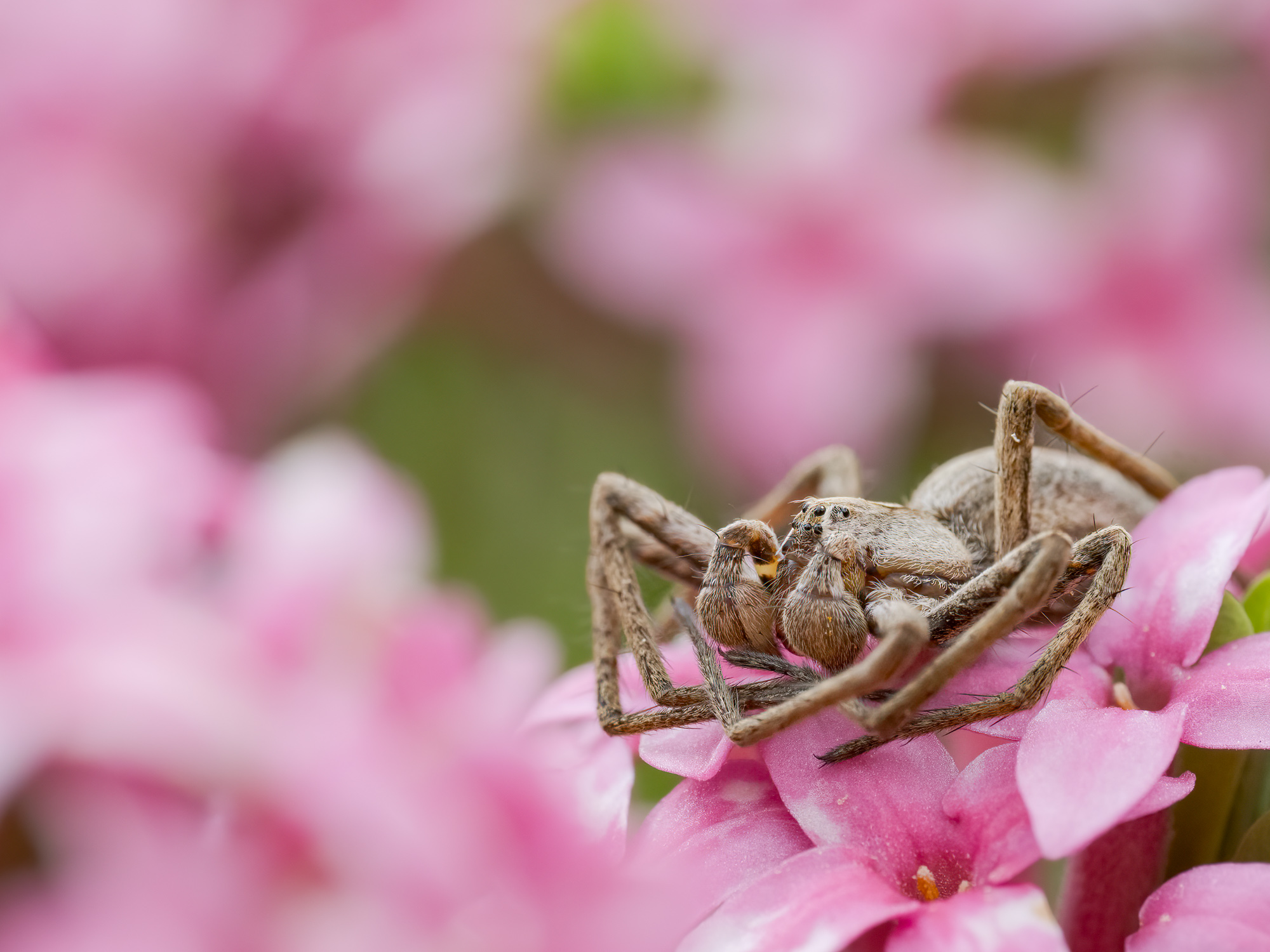 Mam zdjęcia z tej sesji z większą głębią ostrości, choć przy mniej atrakcyjnych kadrach. Ale zbyt dużo detali (no bo stackuje się nie tylko pająk) odciąga wzrok od głównego bohatera. Zdarzało mi się również eksperymentować - 8488 - ze stackowaniem, gdzie nie stackowałem pierwszego planu, a jedynie fotografowany obiekt. Ale to może wyglądać mocno sztucznie (choć mam nadzieję, że na 8488 tej sztuczności jednak uniknąłem).