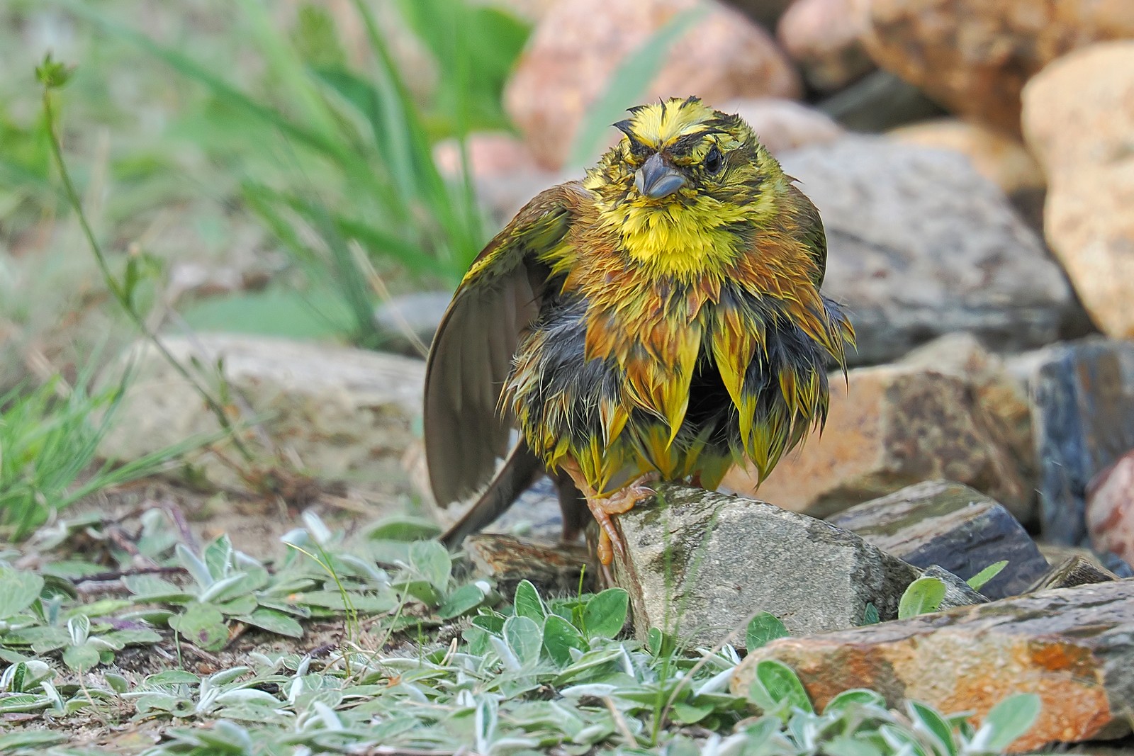 Samiec makolągwy - jeszcze mokry po kąpieli (zdjęcia z końca lipca):