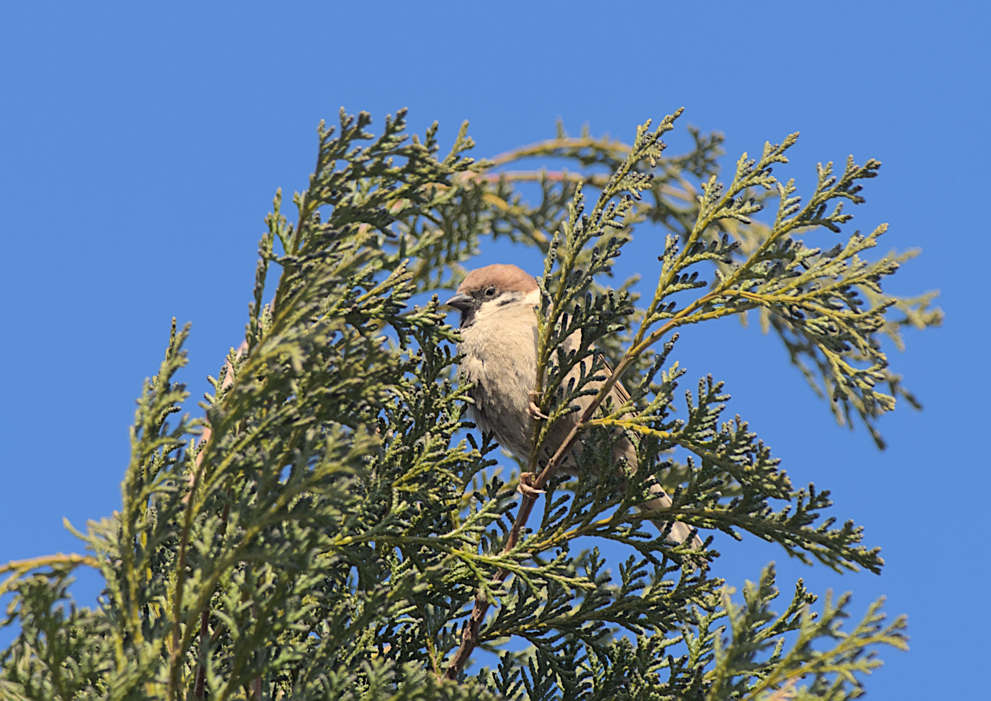 Mazurki się grzeją, a samica kapturki się suszy na skraju baseniku (zdjęcie z początku września):